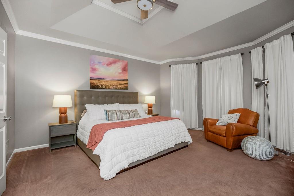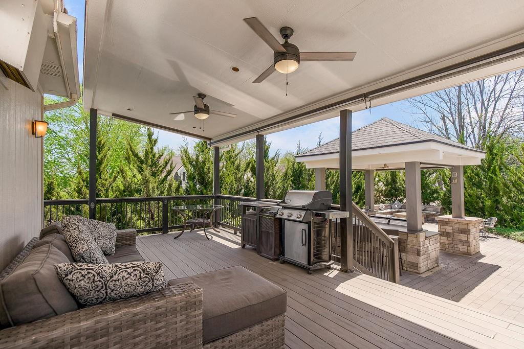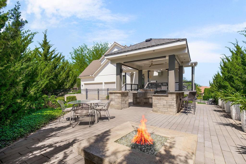 Welcome to this stunning and spacious 1.5-story home designed for both comfort and entertaining! The custom gourmet kitchen is a chef’s delight, boasting top-of-the-line Viking appliances, a gas range, and a generous island perfect for meal prep and casual gatherings. Step outside to your private retreat featuring an outdoor kitchen and a cozy fire pit—ideal for relaxing or entertaining year-round. Inside, the main level impresses with a formal dining room, a bright great room with expansive windows and a see-through fireplace, a private office, and a luxurious primary suite. Upstairs, you’ll find three spacious bedrooms and a versatile loft area—perfect for a playroom, reading nook, or extra workspace. The finished walkout lower level offers even more room to enjoy, including a family room, wet bar, rec area, and an exercise room. Nestled on a quiet cul-de-sac with a fenced yard and easy lake access, this home combines privacy, elegance, and convenience. A backyard gate leads directly to the sidewalk and dock, just steps away. This home truly has it all—style, space, and a perfect setting for everyday living or entertaining!