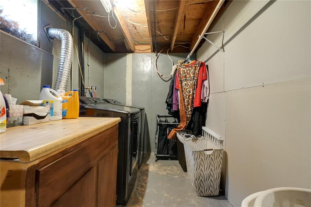 Unfinished basement featuring exposed wood joists and concrete flooring