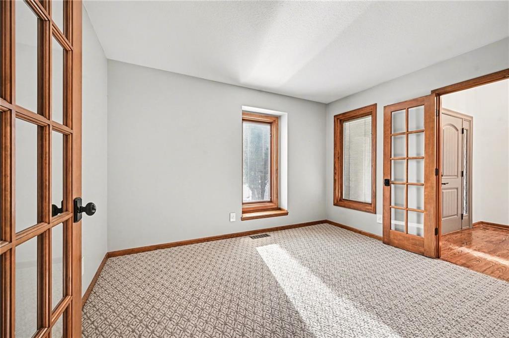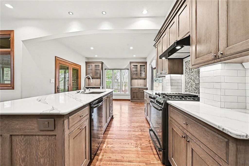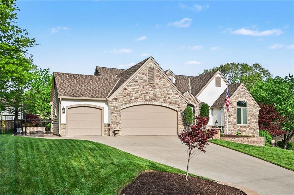 Located near the Lawrence Country Club, this expansive and beautifully maintained home offers exceptional space, updates and comfort throughout. The welcoming hardwood entry opens to an office with French doors. The spacious living room features gleaming hardwoods, a vaulted ceiling and a cozy fireplace. The oversized kitchen is a chef's dream-with quartz countertops, custom cabinetry, under-cabinet lighting, a gas range, built-in microwave, wine fridge and hardwood floors. There is an enclosed sunroom complete with ceiling fan, split heat/air and a nice doggie door. The main-level primary suite is spacious, has a massive walk-in closet and a wonderful, updated bathroom with a huge walk-in shower, custom cabinets and gorgeous tile flooring. A second main-floor bedroom has lots of room. There is a full bathroom in the hall with a wonderful skylight. There is a main floor laundry room as well as a laundry area in the lower level. The upstairs has two large bedrooms. The third bedroom has a large walk-in closet and beautiful plantation shutters. The fourth bedroom also boasts a nice walk-in closet. There is a bathroom on the second level that has a wonderful step-in shower. The lower-level walkout basement offers luxury vinyl flooring, a secondary kitchen with a huge island, sink and custom-built cabinets. The fifth bedroom is absolutely enormous with a large walk-in closet. There is a full bathroom in the lower level which makes this area perfect for guests or extended living. The lower-level walks out to a large patio. The big backyard has a gorgeous stone patio, pergola and a nice firepit. This home has beautiful landscaping, stone walkway in the front and a three-car garage. This stunning home combines abundant living space, quality craftsmanship, and a prime location near golf, trails, shops, schools and more. This is an ideal blend of luxury and comfort. Taxes and rooms sizes are approximate. Buyer to confirm schools and any information they deem important.
