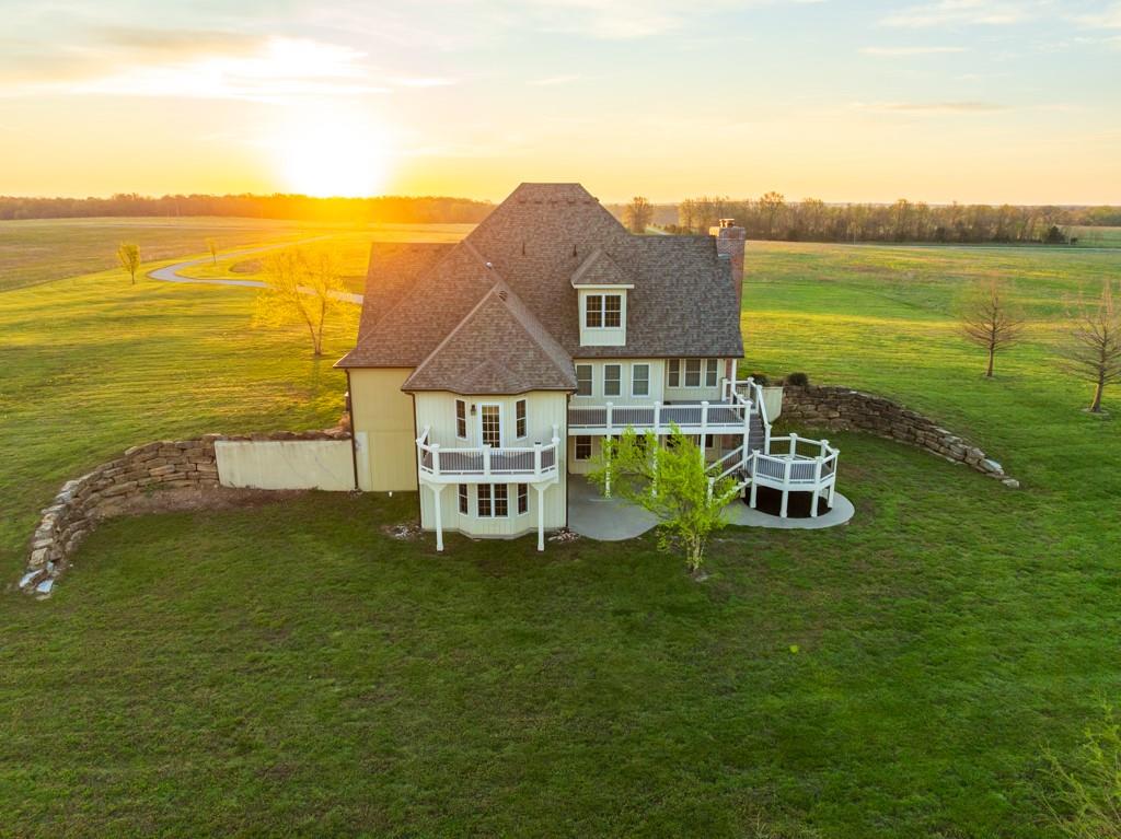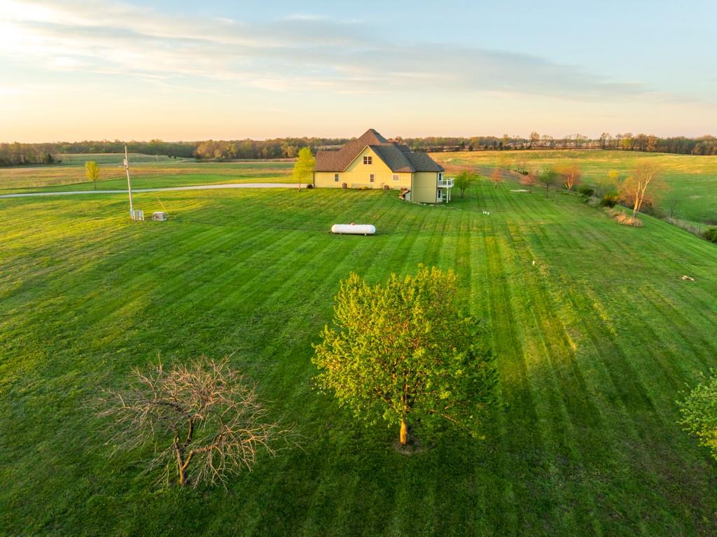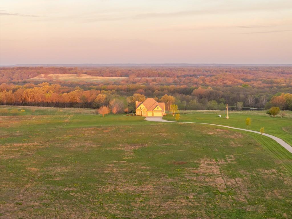 Escape the city life and live on 71.6 +/- acres that looks like a setting from a magazine. You will fall in love with the 1,000+ foot driveway access to the house that sits perfectly overlooking the property. Enjoy the sunrise and sunset views that literally go on for miles. The gently rolling land mainly consists of amazing pasture ground along with a 5 +/- acre patch of timber. It gets even better with a 2.5 +/- acre spring fed pond that is loaded with fish! The land offers it all and the real possibility of making it your very own country homestead. The 5 bedroom, 4.5 bathroom house was built in 2005 and offers plenty of space for the family and entertainment. It’s a must see! The main level features a living room with a fireplace, vaulted ceilings, formal dining room, oversized eat-in kitchen, and a massive master suite. The upstairs includes 4 spacious bedrooms, 2 bathrooms, and an additional large play or storage room. The full walkout basement offers plenty of storage space and is currently framed as a separate studio apartment style living quarters for guests or in-laws. Another awesome feature is the oversized 5 car garage offering plenty of room for vehicles, gear, or a workshop. Don’t forget about the incredible deck off the main level with amazing scenic views. Another bonus is the 30’x50’ outbuilding that will come in handy for storing farm equipment and other fun toys. This property checks all the boxes!