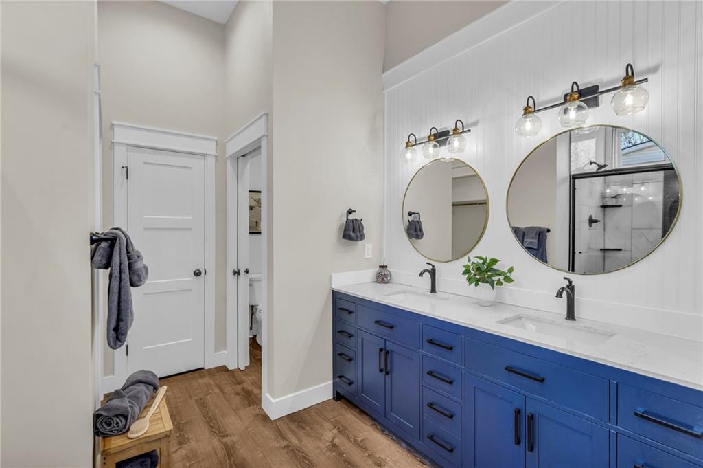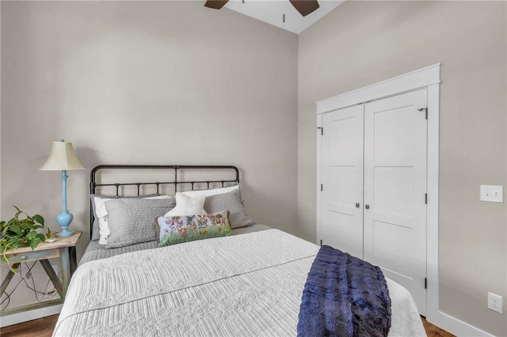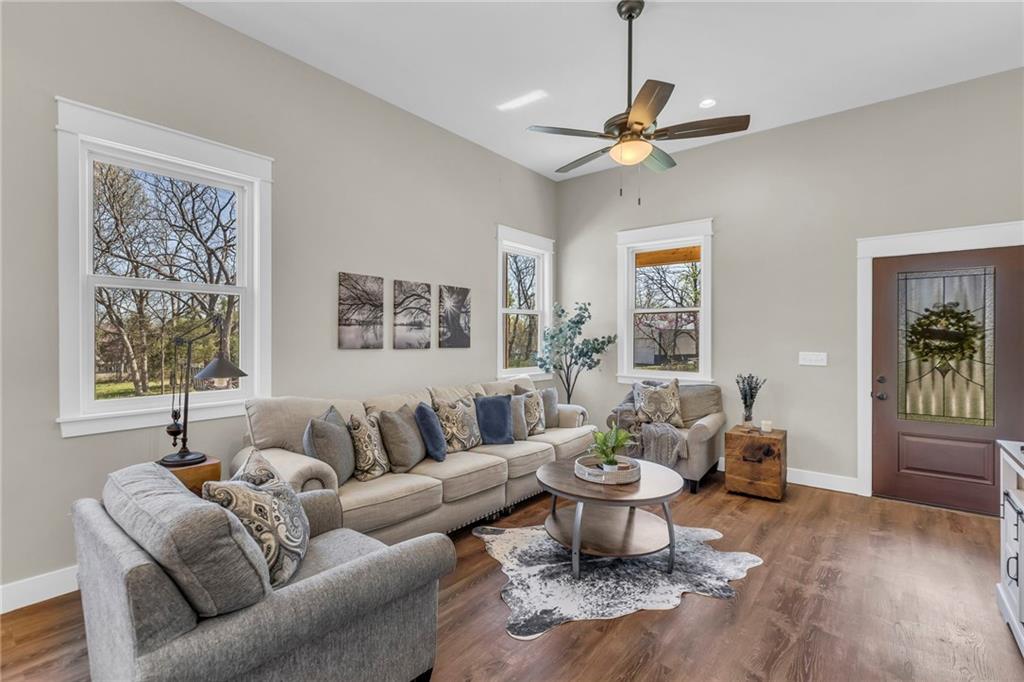 69 south to 399th St exit. West to 399th. South on Jingo Rd. Go 2 miles to the front gate of Linn Valley Lakes. From front gate, turn right and go straight through 3 way stop. Turn right on Rose Marie Dr. Turn left on Enchanted Ln.