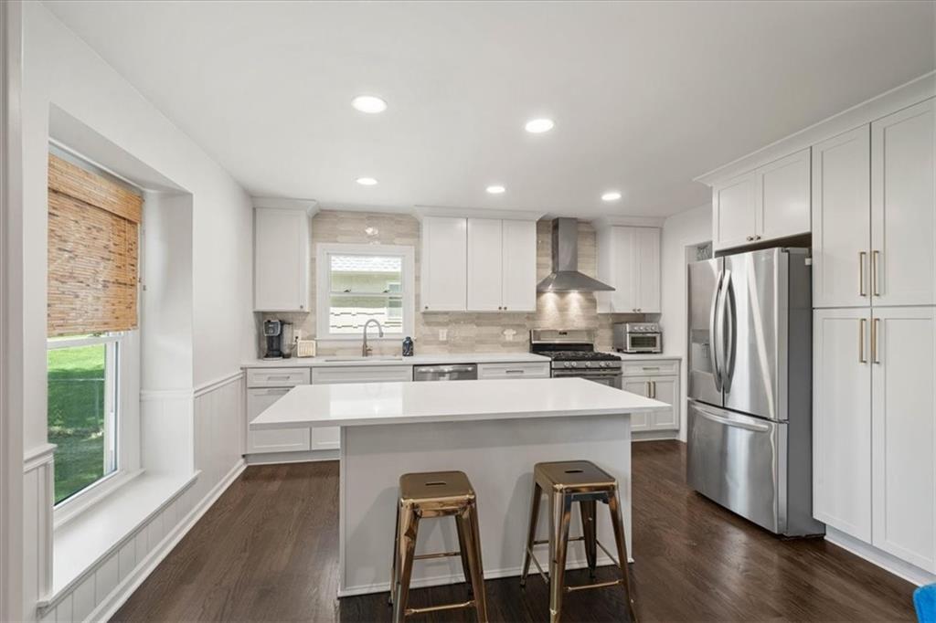Beautifully updated, this inviting Overland Park home blends stylish finishes, functional living space, and strong curb appeal in the sought-after Round Hill neighborhood. With a stunning kitchen, fully renovated bathrooms, and quality improvements throughout, this move-in ready home delivers both comfort and everyday practicality. A well-designed layout creates a natural flow between multiple living areas, offering flexibility for entertaining, working from home, or daily routines. The kitchen anchors the home with sleek countertops, updated cabinetry, stainless steel appliances, and generous prep and storage space. It opens directly to the expansive family room, where a brick fireplace and oversized windows create a warm, comfortable setting for gathering or unwinding. Upstairs, the primary suite provides a relaxing retreat, highlighted by a renovated en-suite bath with marble countertops, trendy brass fixtures, and a clean, timeless tile aesthetic. Additional bedrooms are well-sized and adaptable, while the hall bath reflects a consistent level of finish and attention to detail. A drop zone and laundry room are conveniently located just off the garage, and a bonus room on the main level offers additional flexibility for play, work, or hobbies. Located within the Briarwood, Indian Hills, and Shawnee Mission East school boundaries, the home is also just minutes from Meadowbrook Park, offering access to trails, green space, and community amenities. Nearby shopping, dining, and everyday conveniences along 95th Street and Metcalf further enhance the location. With its thoughtful updates, flexible layout, and highly desirable setting, this home presents a compelling opportunity in one of Overland Park’s most established neighborhoods.