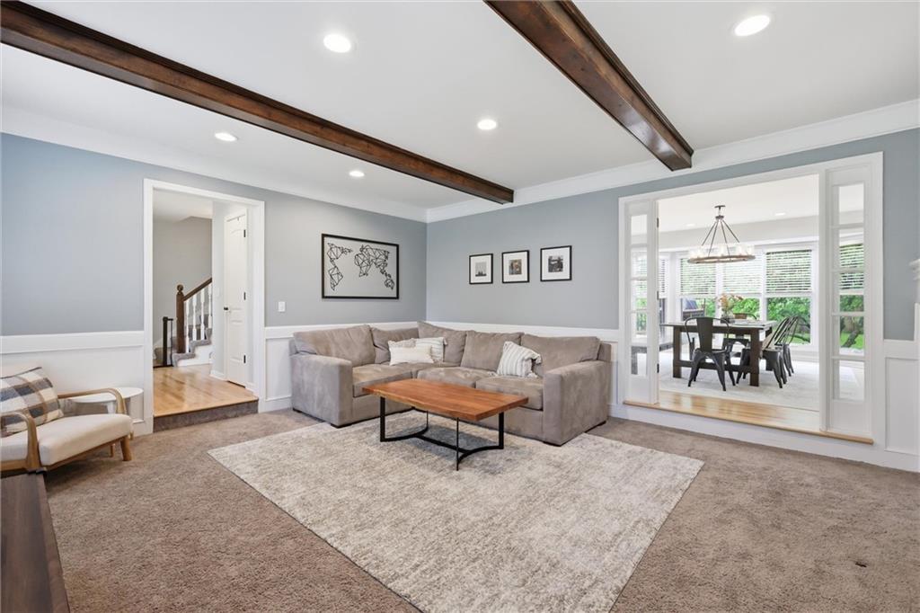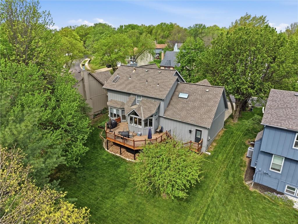 Welcome to Brookwood in Lenexa—where location meets lifestyle! Ideally situated with quick highway access, abundant nearby shopping & just minutes from the Lenexa City Center, this beautifully renovated home truly checks all the boxes. Lovingly updated by the current owners, nearly every surface has been thoughtfully refreshed. The show-stopping kitchen is sure to impress, featuring stainless steel appliances, a gas range with hood, a massive center island with quartz countertops & a stunning mix of stained wood cabinetry on the island paired with crisp white shaker cabinets along the perimeter. A charming bay window, bar area with a beverage center & floating shelves, and updated lighting complete the space. The adjacent dining area offers plenty of room to gather and is highlighted by a chandelier. Refinished hardwood floors flow throughout most of the main level, where you’ll also find a spacious carpeted living room with a fireplace and built-in shelving. The updated powder bath features a new vanity, mirror, lighting, and a shiplap accent wall. Step outside to the large deck that is set up with gas lines for a grill and firepit—perfect for entertaining & enjoy the privacy this lot provides. There is a greenbelt behind the house! Upstairs, you’ll find three generously sized secondary bedrooms, all with ceiling fans, including one with an incredible walk-in closet. The primary suite features a tray ceiling, a fireplace, dual closets, and a beautifully remodeled bathroom with a spa-like custom tiled shower, double vanity, updated lighting, mirrors & a full tile backsplash. The secondary full bathroom has also been updated with a stylish vanity, hexagon tile flooring, and newer fixtures. Convenient second-floor laundry makes everyday living easy. The finished lower level adds even more living space, complete with a wine closet and additional storage. This is a fantastic opportunity to own a move-in ready home in one of Lenexa’s most desirable areas—don’t miss it!