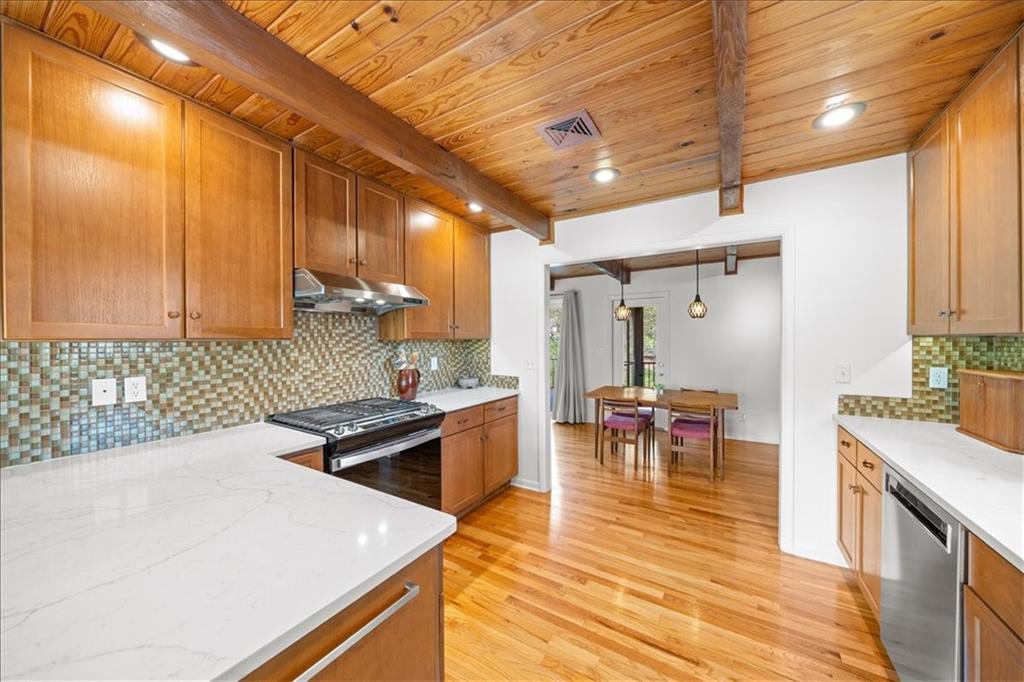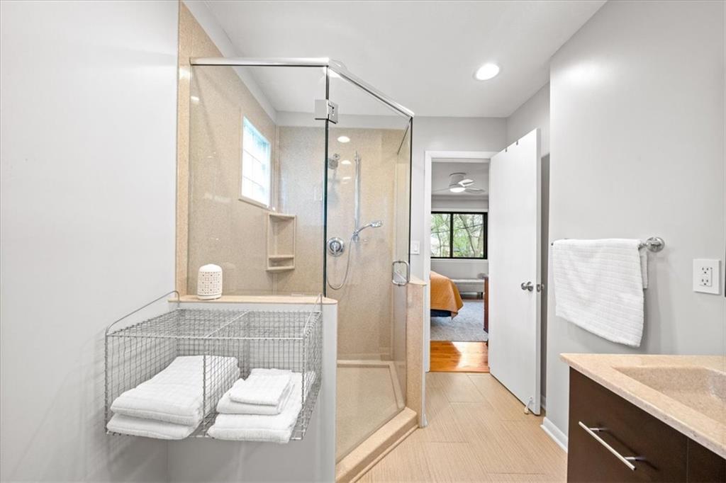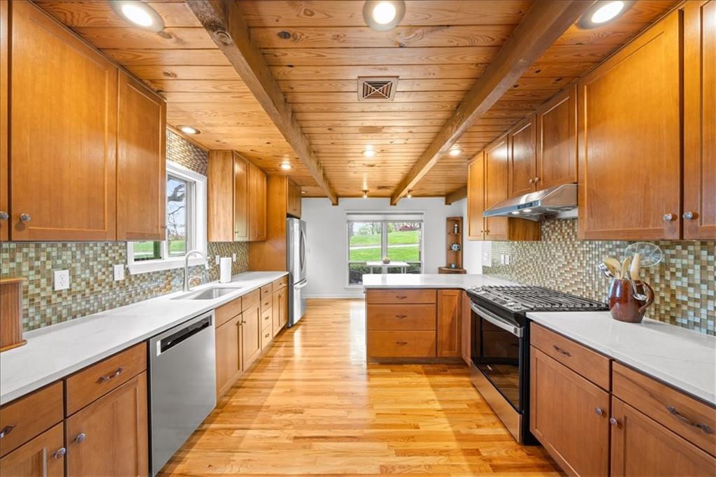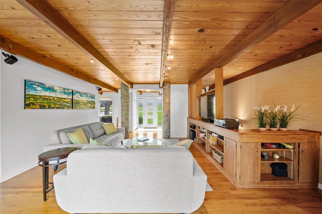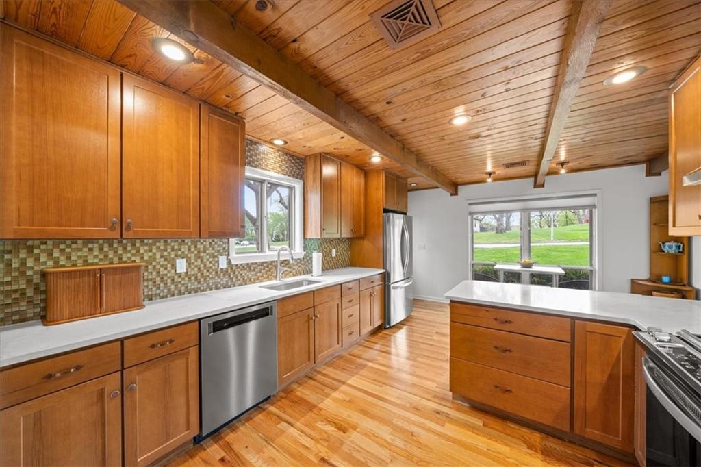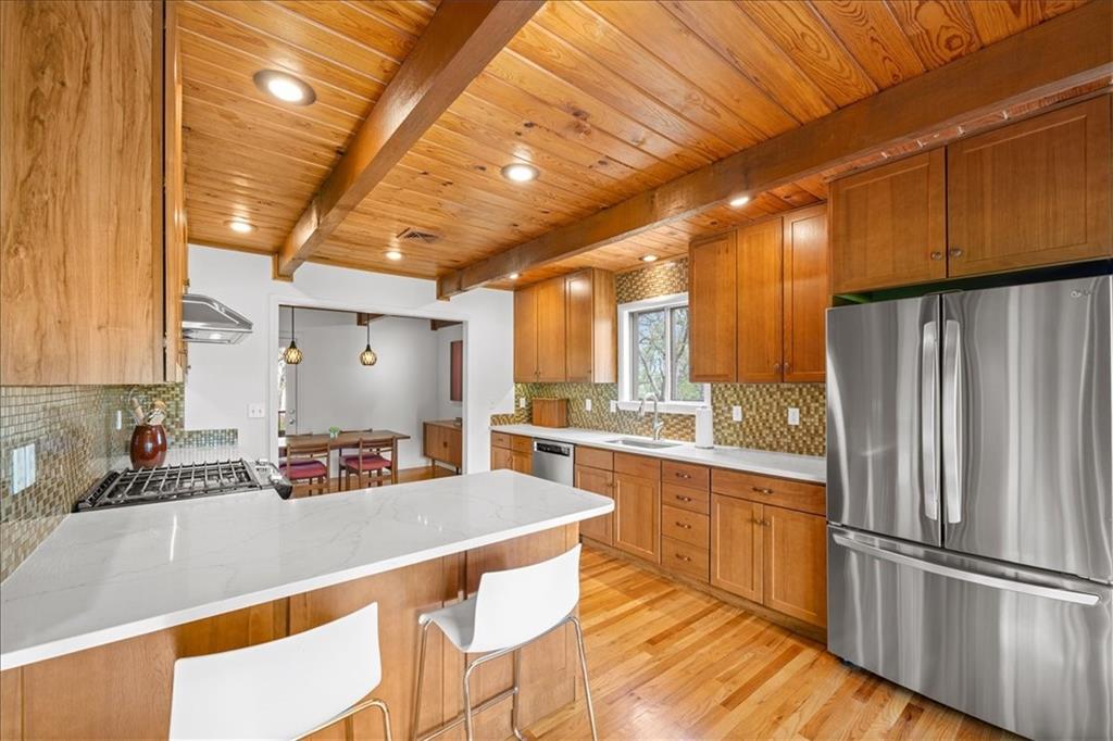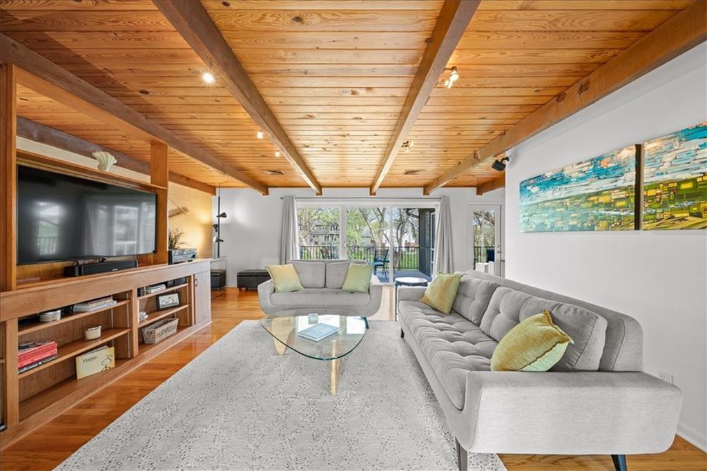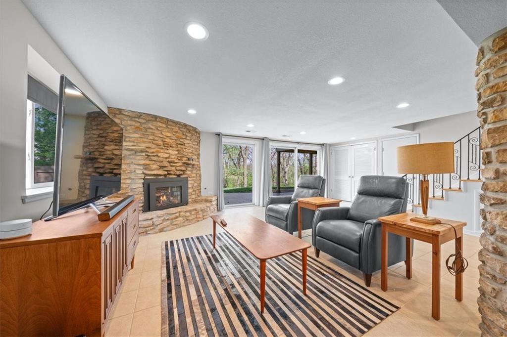 Special neighborhood with rare turnover thanks to its prime location and large lots. This Mid-Century ranch has been lovingly cared for by its current owners for the past 17 years. The home has been thoughtfully updated while retaining original architectural details, such as the wood ceilings, living room built-ins and columns faced with local stone. Large windows overlook the private wooded backyard, which you’ll also appreciate from the deck and screened in porch. The kitchen has been updated with quartz counters and stainless appliances, and adjoins a cozy dining room. The primary suite is a comfortable retreat. Downstairs you’ll find another living area with a high efficiency fireplace, a bar, and a third full bath. Walk right out to a stamped concrete patio with wiring in place for a hot tub, and a fire pit. Location, privacy, style and a very livable efficient floorplan – this one has it all.