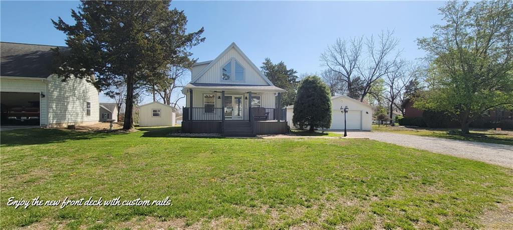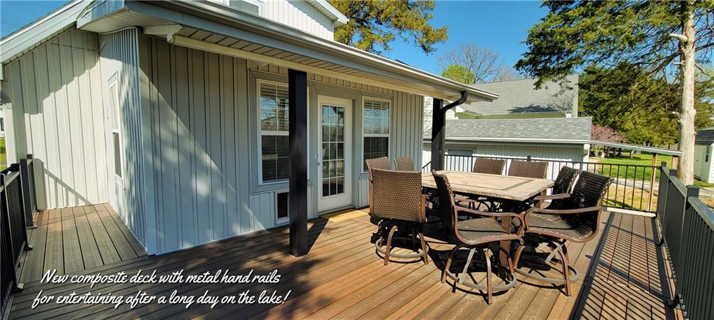 Beautifully remodeled 3 bdrm 2 bath home with 2 car garage in the popular TRUMAN LAKE COMMUNITY OF STERETT CREEK VILLAGE! The new composite front porch leads the spacious vaulted living room & dining area with new flooring & paint throughout. Gorgeous remodeled kitchen boasts of new cabinets, granite countertops, new stainless appliances, farm sink, island & pantry with barndoor. Large main floor bedroom/family room has access to the beautiful new composite back deck. Second main floor bedroom &remodeled bath with walk-in shower. New custom hand rail goes to the upper level 3rd bedroom with lots of custom storage & full bath. A quaint courtyard leads to the oversized 2 car garage. Owners have done many other upgrades to include, roof, HVAC system, interior doors, all in one washer/dryer, lighting & hot water heater. Neighborhood amenities include, pool, pickleball & basketball court & shelter house for community events. Jump on your golf cart and go down to MARINA for a boat ride or enjoy the music & great food! Fish year around on gorgeous TRUMAN LAKE. HURRY! THE LAKE LIFE IS WAITING FOR YOU!!