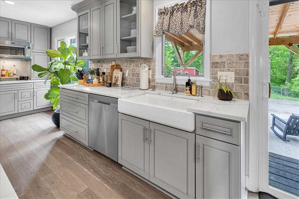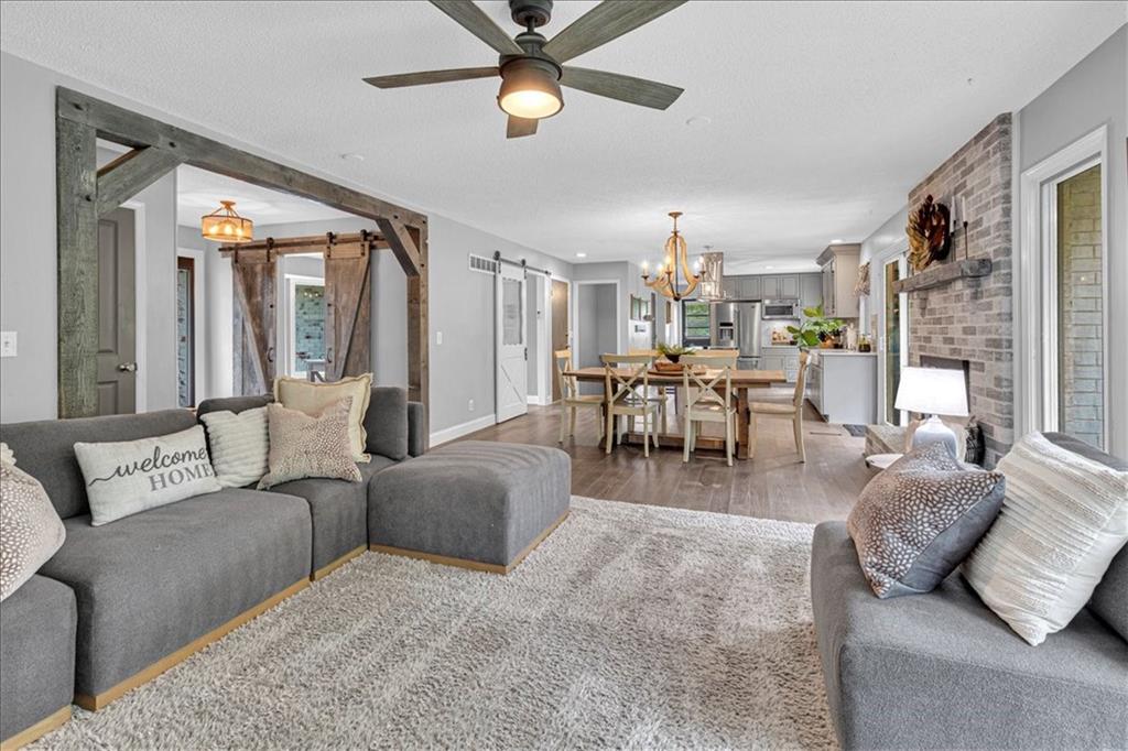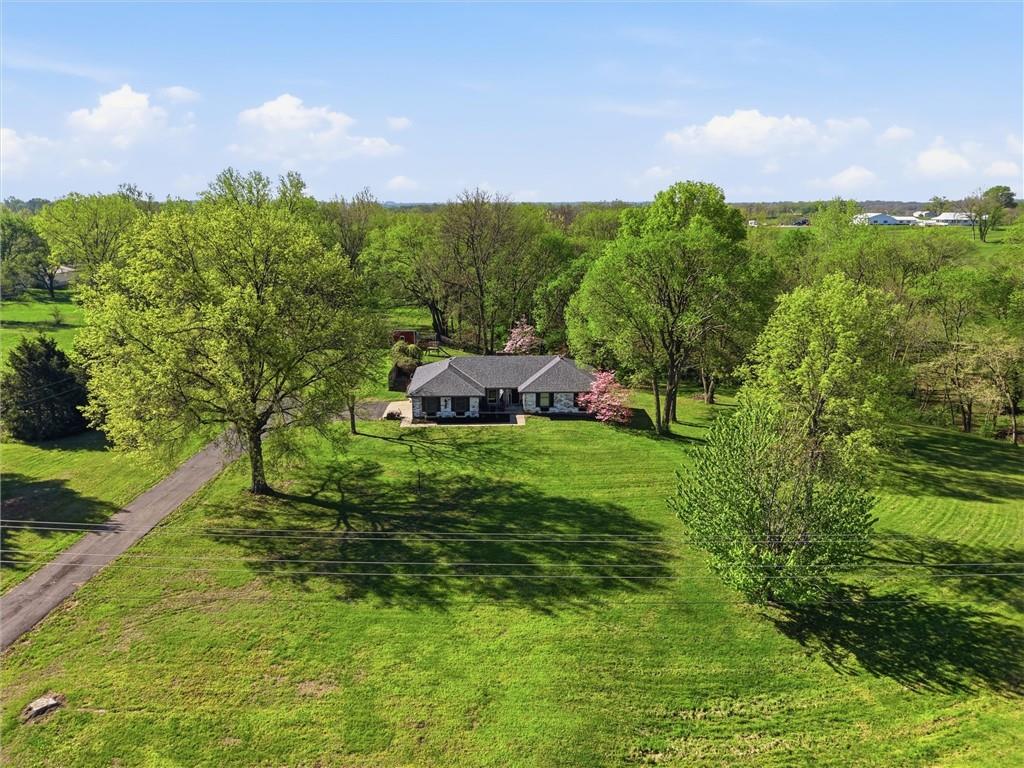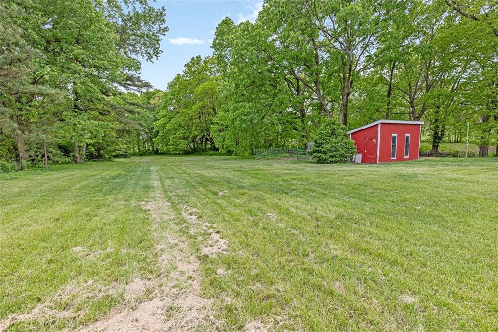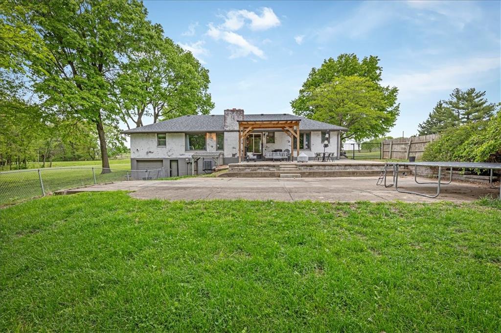 Welcome to your private slice of country living just minutes from the conveniences of Kearney and Liberty. Nestled on 5 beautiful acres, this fully updated reverse ranch offers over 3,200 square feet of thoughtfully designed living space—blending comfort, style, and functionality. The newly renovated main level features an inviting layout, completely renovated with hardwoods, open kitchen with large island & coffee bar, highlighted by a stunning brick wood-burning fireplace that creates a warm, cozy focal point. You’ll also find a versatile formal dining space that can easily serve as a home office to fit your lifestyle needs, along with the added convenience of main-level laundry. With two spacious bedrooms and 2.5 bathrooms on the main level, this home is designed for comfortable everyday living. Downstairs, you’ll find even more room to spread out with a third bedroom, an additional 1.5 bathrooms, and flexible living space—ideal for guests, a second living area, or multi-generational living. PLUS a Suspended Garage with single garage door access - offering you nearly 500sf of workshop space. Outside, enjoy the peace and privacy of acreage living with a fenced backyard, perfect for pets, play, or entertaining. This property offers mature trees, Magnolias, Sugar Maple, Natural Honeysuckle and many evergreens. Create your homestead. There's a large covered back porch, the 'Red Barn' outbuilding with concrete floors, electricity and water, plus enclosure for dogs, or other livestock. Electric fencing stays. Resident donkeys, "Mabel" & "Clementine" would love to stay. The three-car garage provides ample space for vehicles, hobbies, or storage. If you’ve been searching for updated living, land, and a location that offers both tranquility and convenience—this one checks all the boxes. No gravel. Completely paved.
