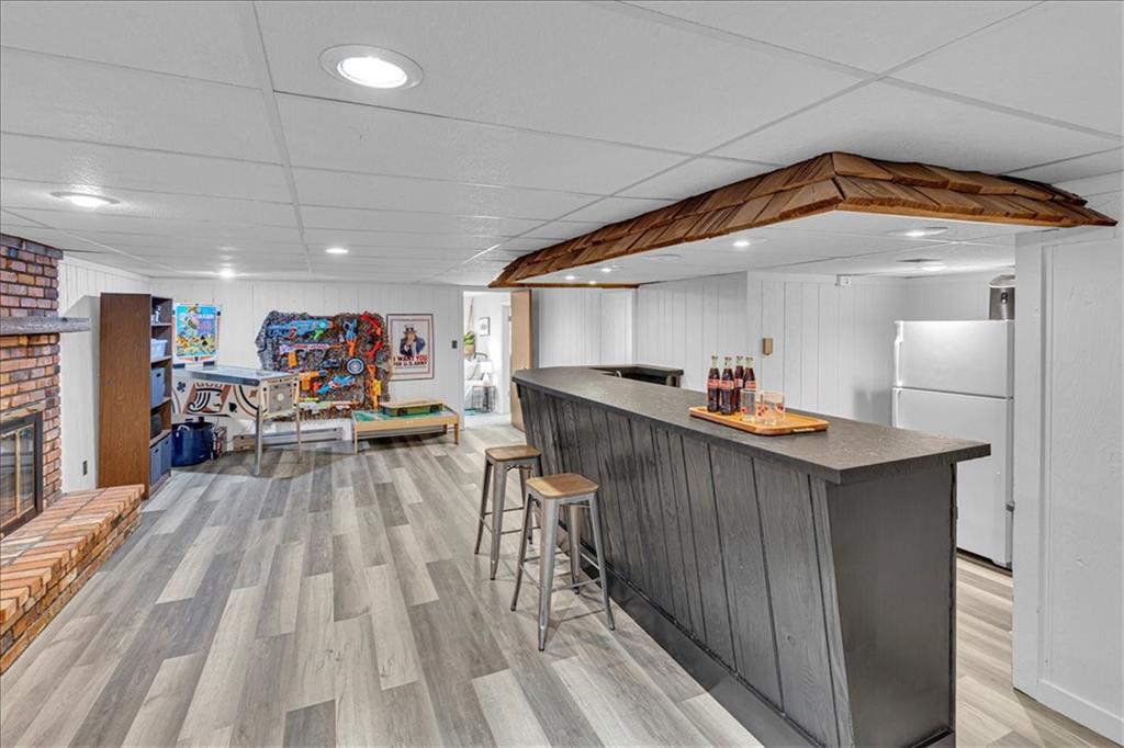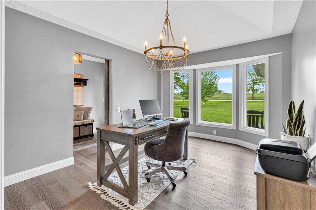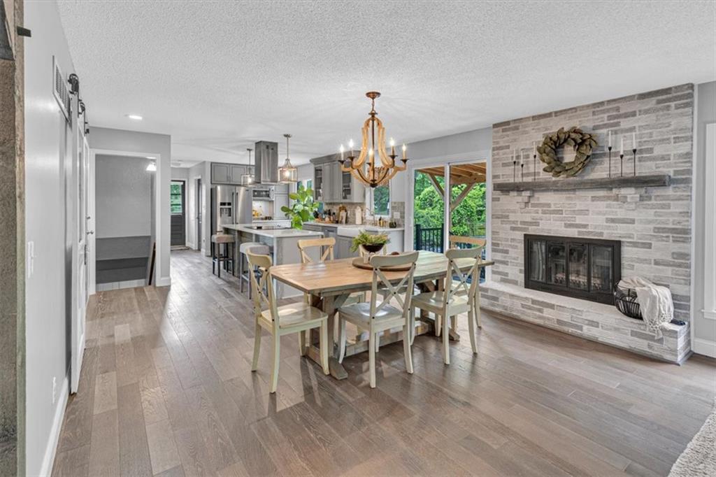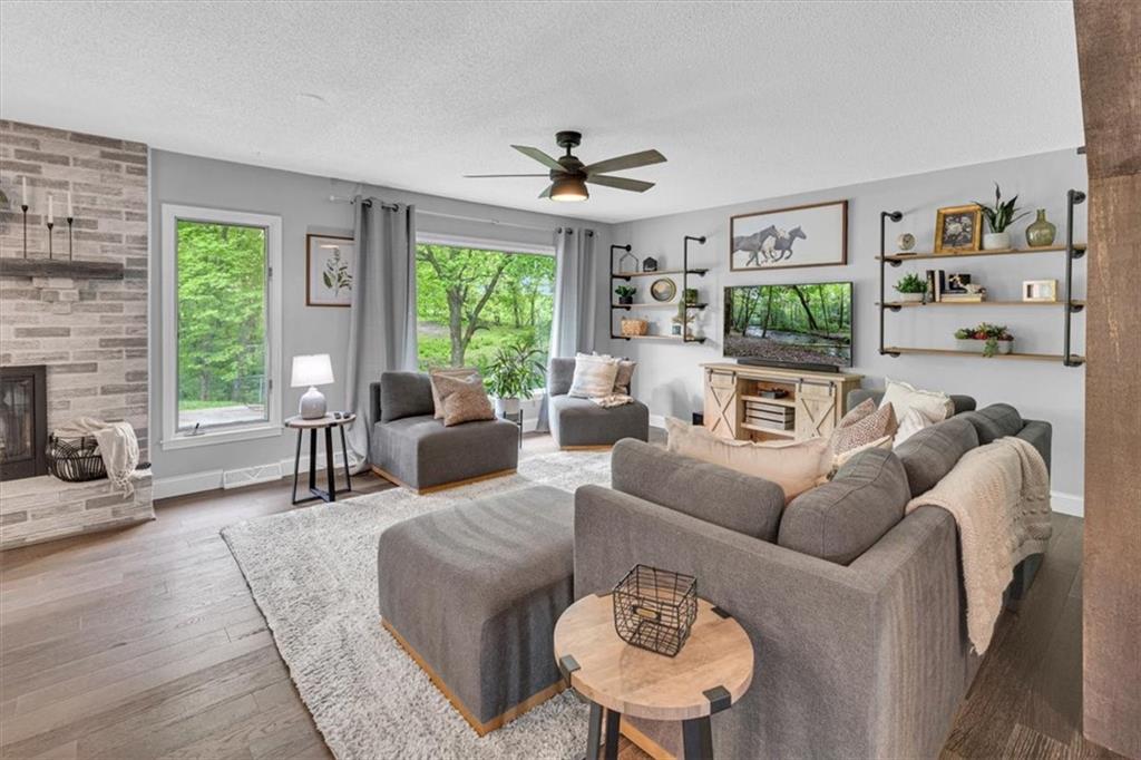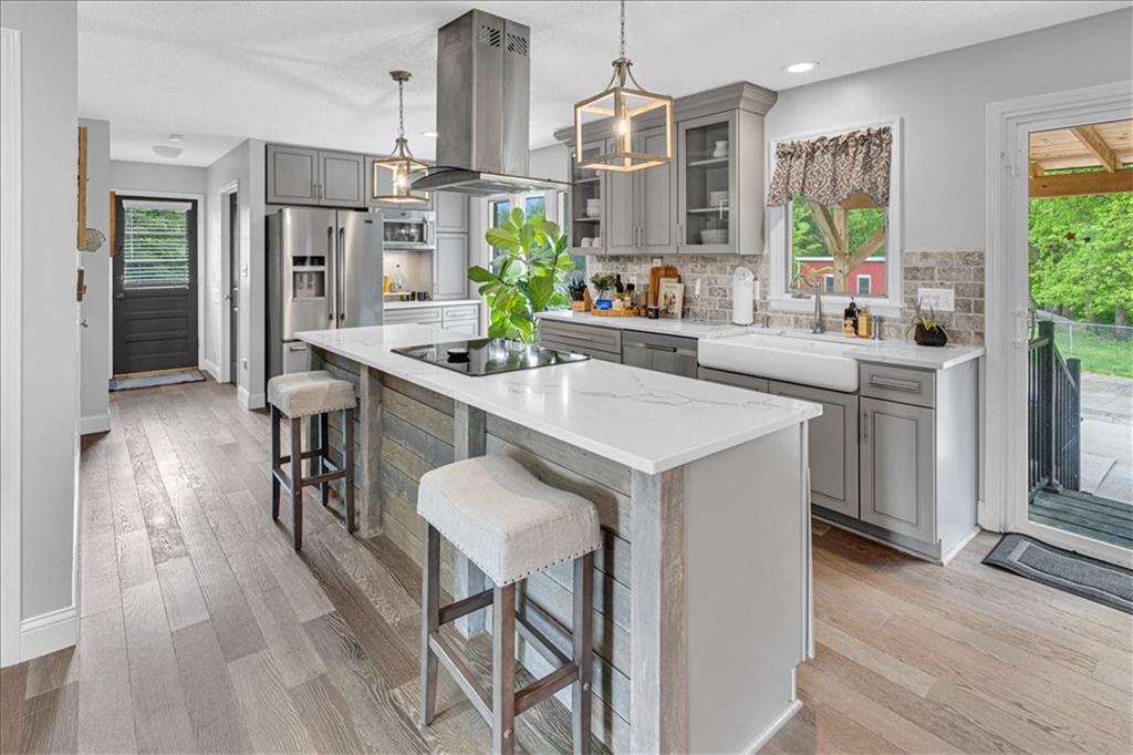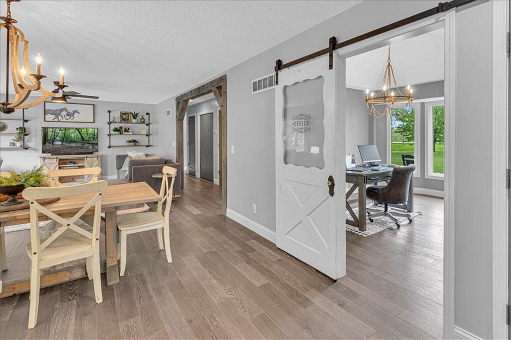 Welcome to your private slice of country living just minutes from the conveniences of Kearney and Liberty. Nestled on 5 beautiful acres, this fully updated reverse ranch offers over 3,200 square feet of thoughtfully designed living space—blending comfort, style, and functionality. The newly renovated main level features an inviting layout, completely renovated with hardwoods, open kitchen with large island & coffee bar, highlighted by a stunning brick wood-burning fireplace that creates a warm, cozy focal point. You’ll also find a versatile formal dining space that can easily serve as a home office to fit your lifestyle needs, along with the added convenience of main-level laundry. With two spacious bedrooms and 2.5 bathrooms on the main level, this home is designed for comfortable everyday living. Downstairs, you’ll find even more room to spread out with a third bedroom, an additional 1.5 bathrooms, and flexible living space—ideal for guests, a second living area, or multi-generational living. PLUS a Suspended Garage with single garage door access - offering you nearly 500sf of workshop space. Outside, enjoy the peace and privacy of acreage living with a fenced backyard, perfect for pets, play, or entertaining. This property offers mature trees, Magnolias, Sugar Maple, Natural Honeysuckle and many evergreens. Create your homestead. There's a large covered back porch, the 'Red Barn' outbuilding with concrete floors, electricity and water, plus enclosure for dogs, or other livestock. Electric fencing stays. Resident donkeys, "Mabel" & "Clementine" would love to stay. The three-car garage provides ample space for vehicles, hobbies, or storage. If you’ve been searching for updated living, land, and a location that offers both tranquility and convenience—this one checks all the boxes. No gravel. Completely paved.