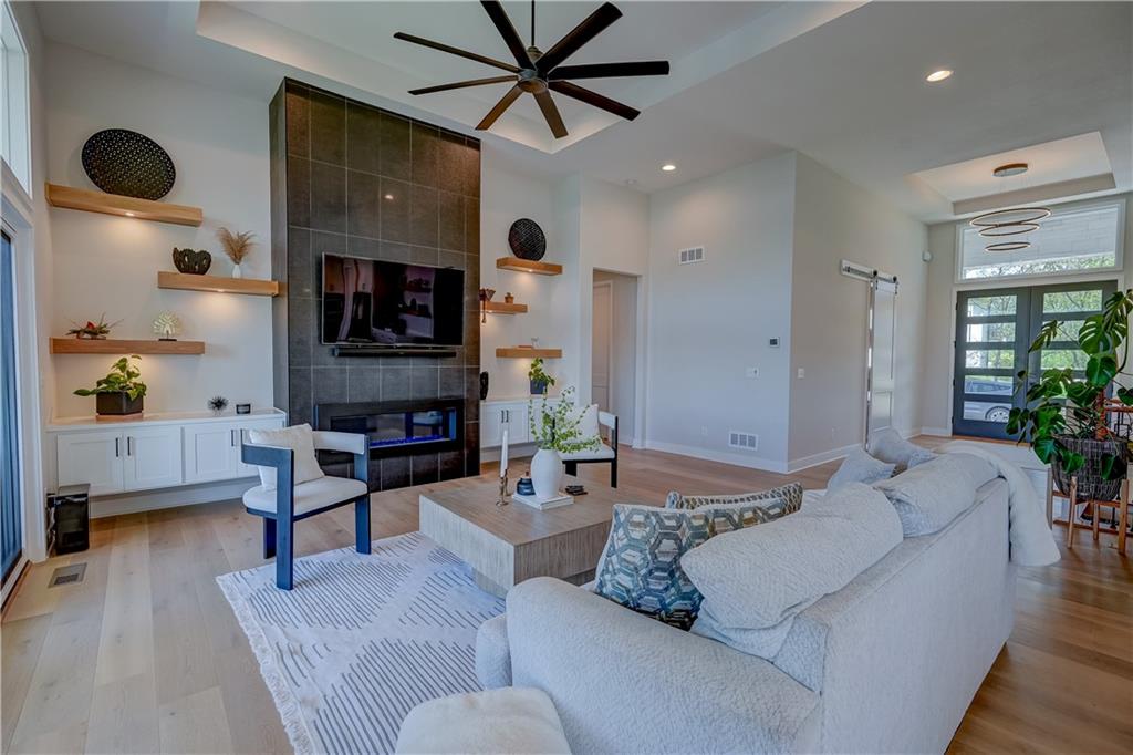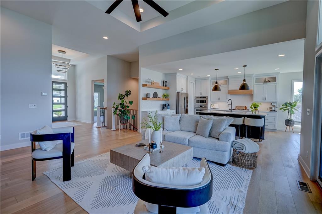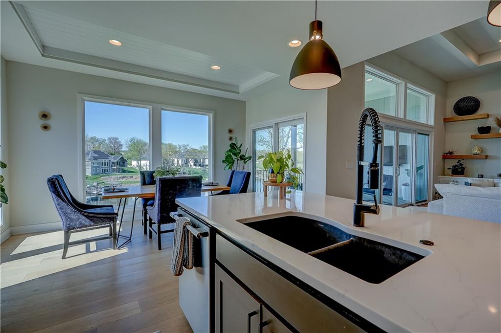 Stunning reverse 1.5 story lakefront home tucked away on a private cul-de-sac lot with awesome water views and direct lake access. This newer 4-bedroom, 3.5-bath home offers an open and spacious layout designed for both everyday living and entertaining. The kitchen is beautiful with custom cabinets, quartz countertops, & Stainless appliances. Enjoy private lake views from the main living areas and step out onto the covered deck to relax or take in the scenery. The finished walkout basement provides additional living space, bedrooms, and easy access to the backyard oasis. Beautifully maintained with extensive landscaping, irrigation system, and a sidewalk leading to your private dock for effortless days on the water. House is located in a cove so perfect for fishing, swimming, and floating with no boat traffic. A rare opportunity to own a move-in ready waterfront home with luxury features, privacy, and incredible outdoor living.