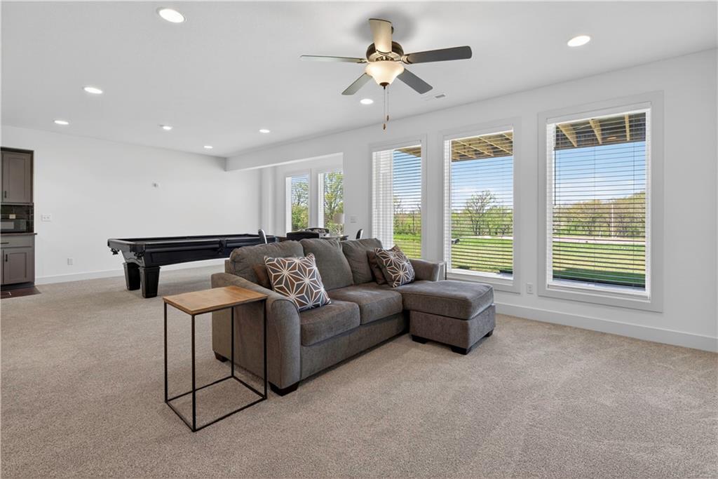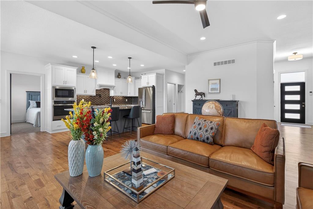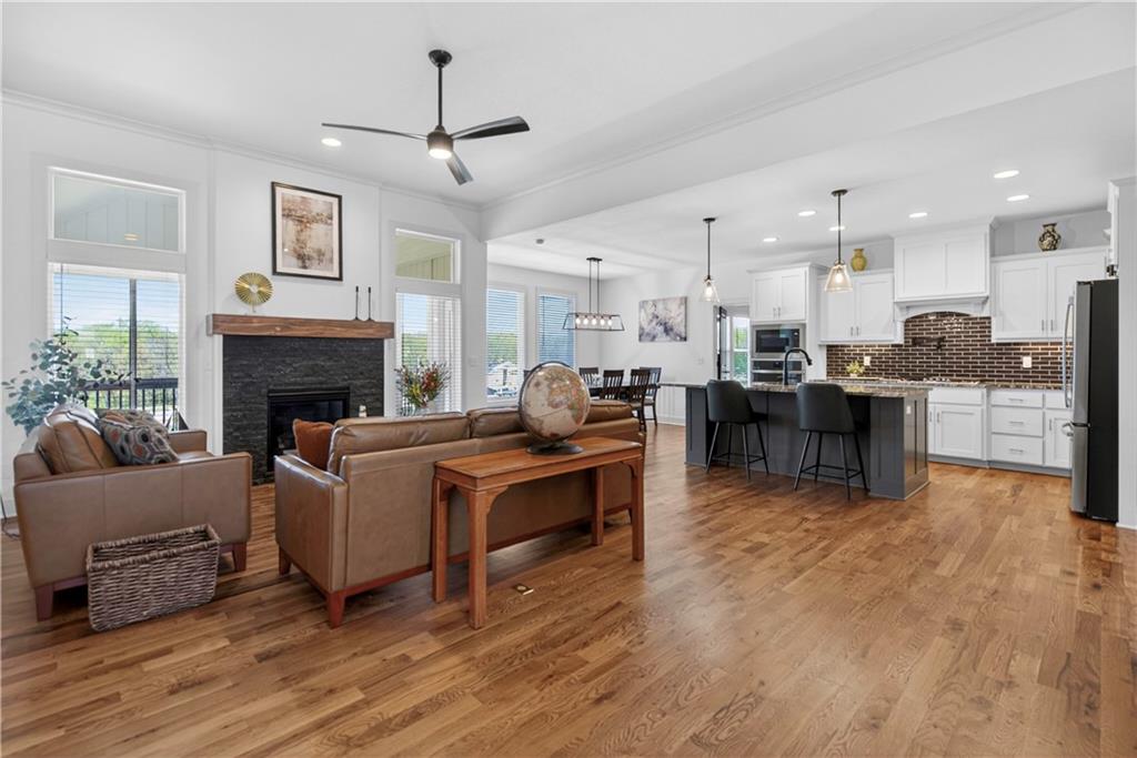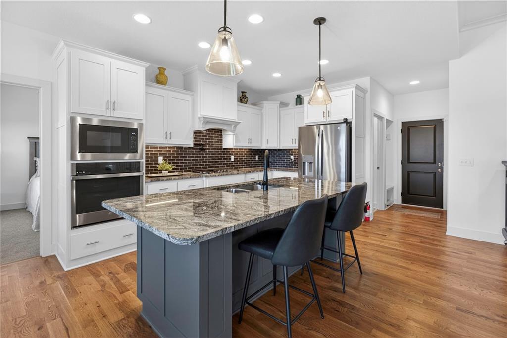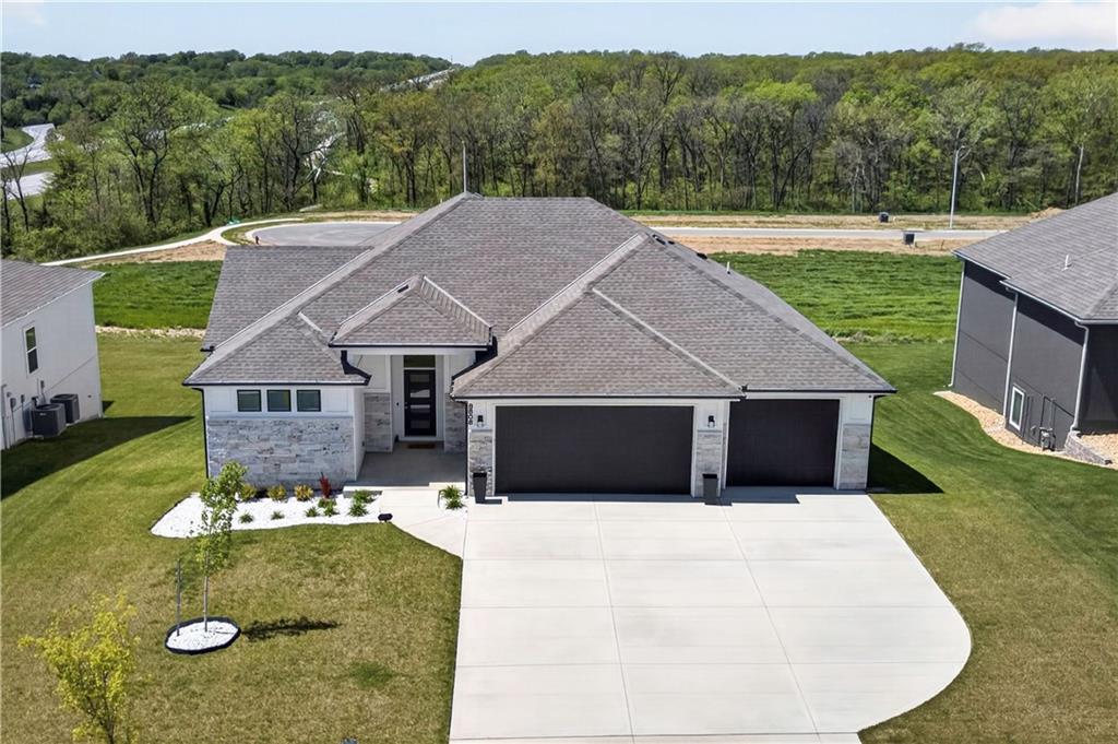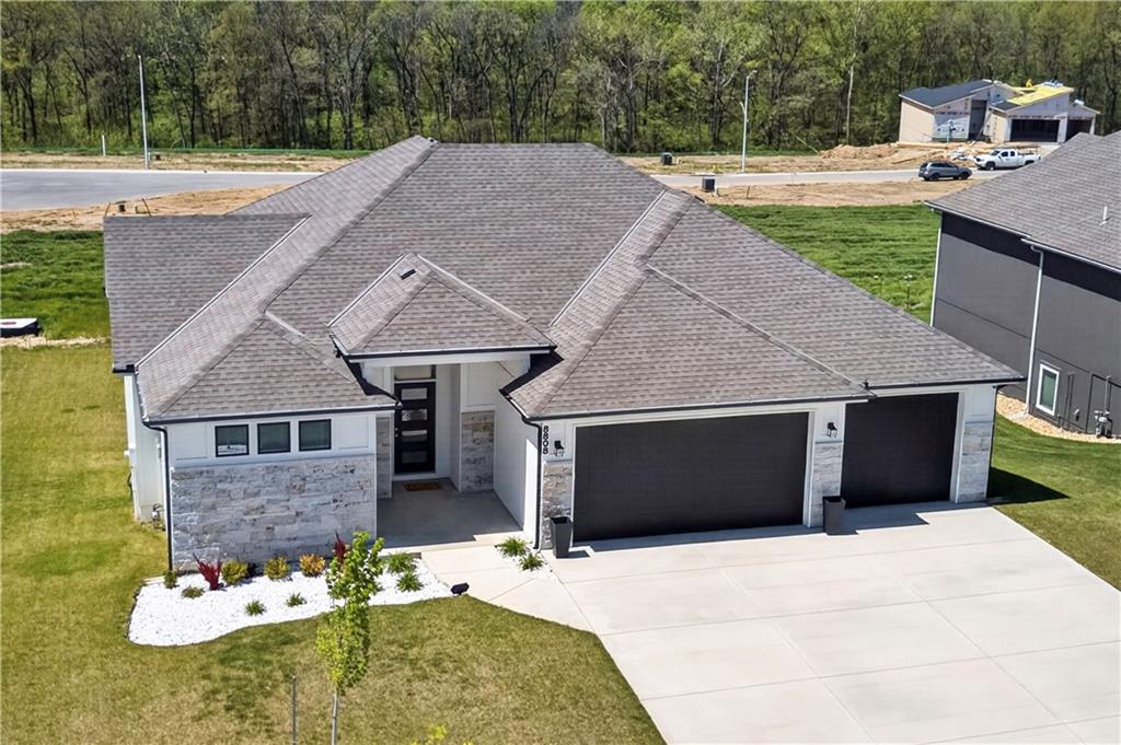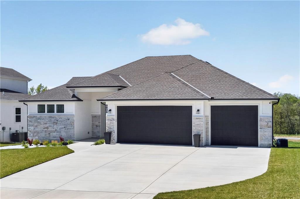 Discover the epitome of modern craftsmanship at 8808 N Clarion Ave, a spectacular 2024-built residence by the renowned Ernst Brothers Construction in the coveted Riverstone subdivision. This expansive reverse 1.5-story "Ashton IV" floor plan offers over 4,000 square feet of meticulously designed living space, featuring 5 spacious bedrooms and 4 full bathrooms. The heart of the home is a light-filled great room with a floor-to-ceiling fireplace that flows seamlessly into a gourmet kitchen and dining combo, while the outdoor oasis includes both a covered deck and a screened patio for year-round enjoyment. Unique to this property is the highly sought-after suspended garage, providing massive additional storage or workshop potential beneath the three-car parking area. Residents benefit from high-end finishes like wood flooring and stone trim, a fully finished walk-out basement with a recreation room and home gym, and the peace of mind that comes with a top-rated Park Hill School District location and exclusive community amenities like the Riverstone pool.