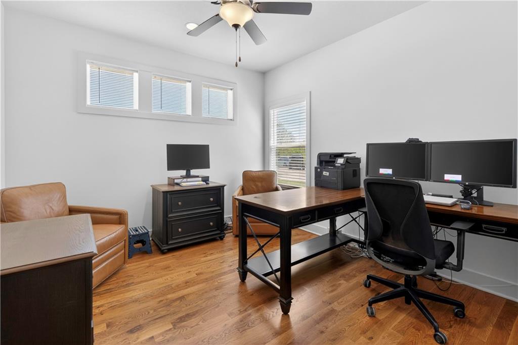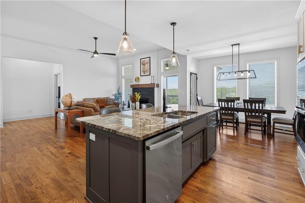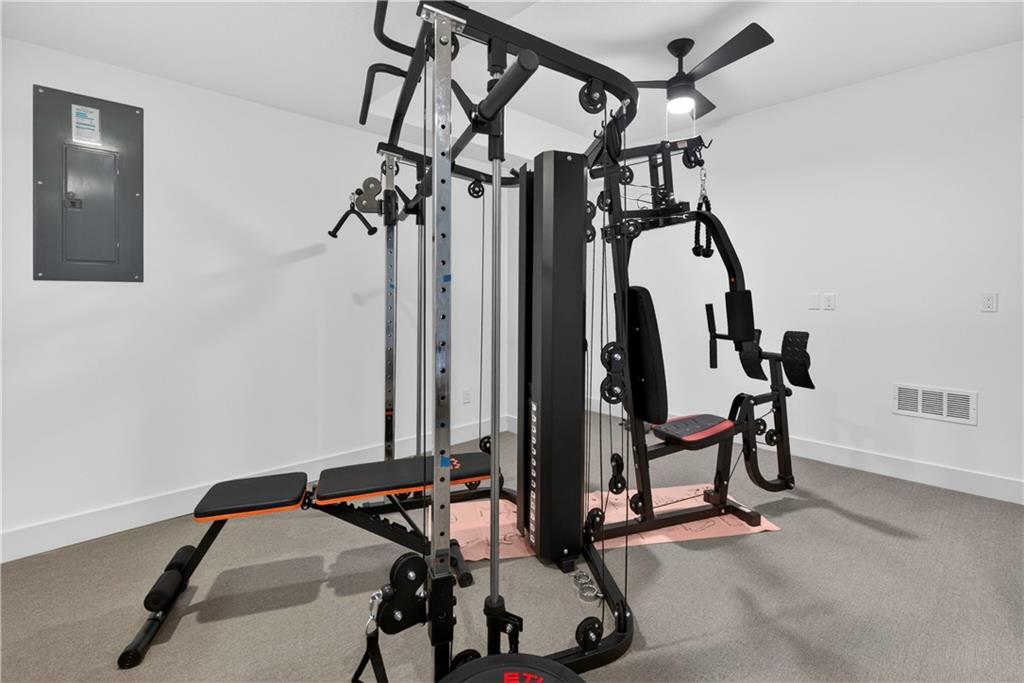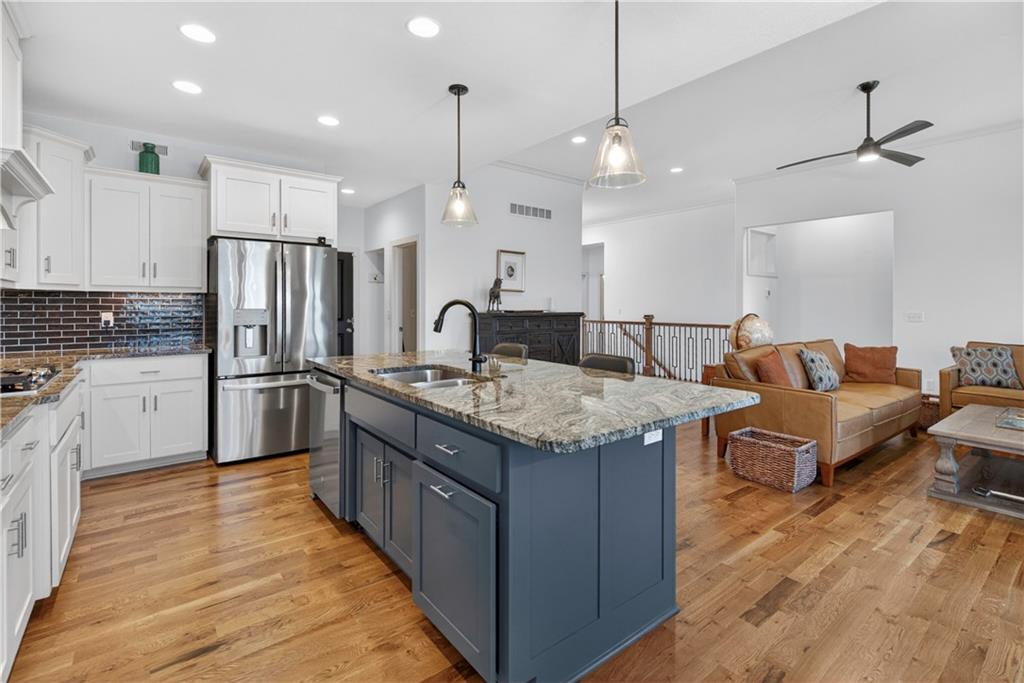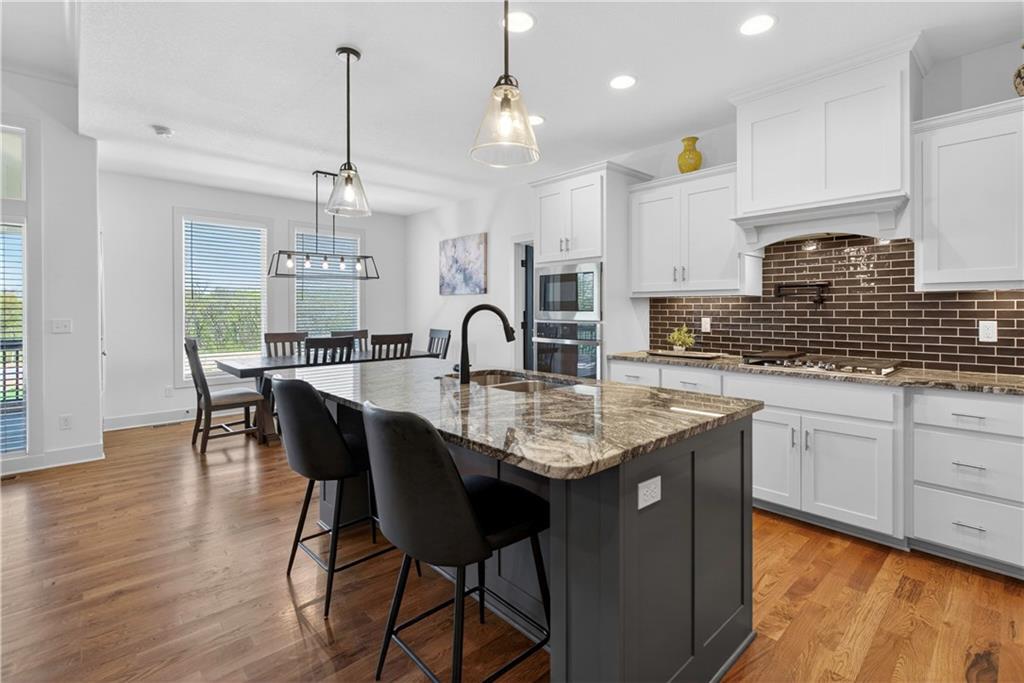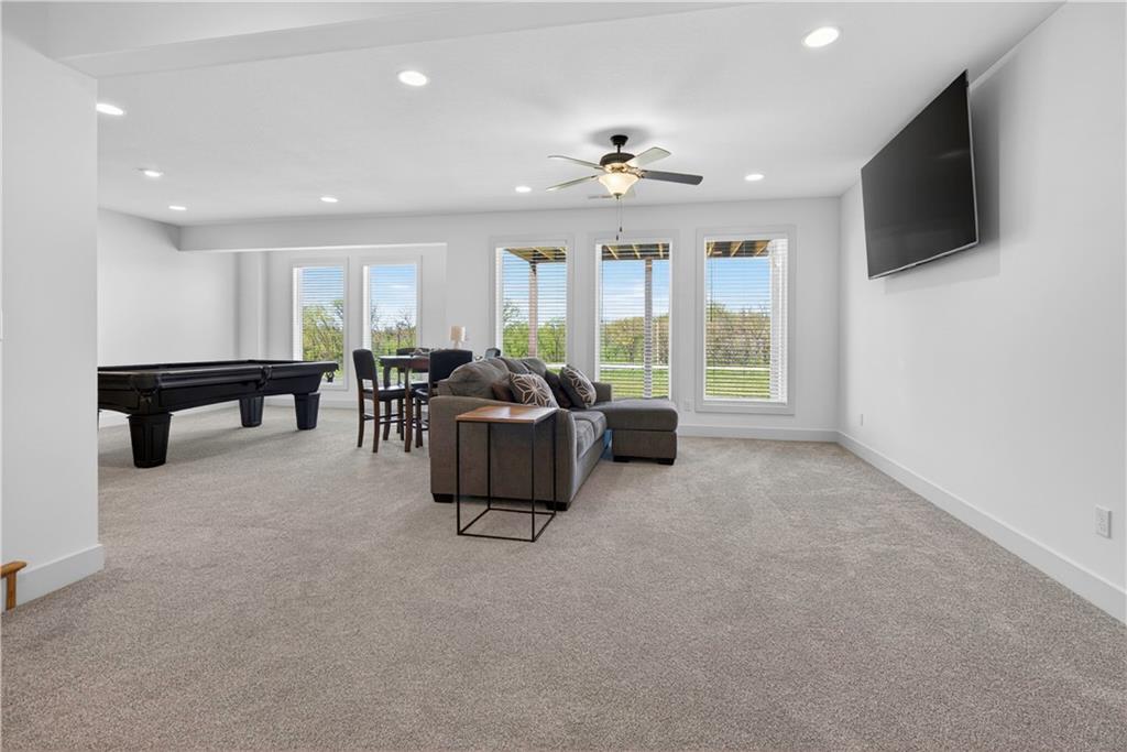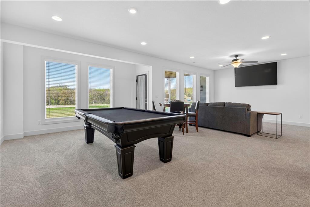 Discover the epitome of modern craftsmanship at 8808 N Clarion Ave, a spectacular 2024-built residence by the renowned Ernst Brothers Construction in the coveted Riverstone subdivision. This expansive reverse 1.5-story "Ashton IV" floor plan offers over 4,000 square feet of meticulously designed living space, featuring 5 spacious bedrooms and 4 full bathrooms. The heart of the home is a light-filled great room with a floor-to-ceiling fireplace that flows seamlessly into a gourmet kitchen and dining combo, while the outdoor oasis includes both a covered deck and a screened patio for year-round enjoyment. Unique to this property is the highly sought-after suspended garage, providing massive additional storage or workshop potential beneath the three-car parking area. Residents benefit from high-end finishes like wood flooring and stone trim, a fully finished walk-out basement with a recreation room and home gym, and the peace of mind that comes with a top-rated Park Hill School District location and exclusive community amenities like the Riverstone pool.
