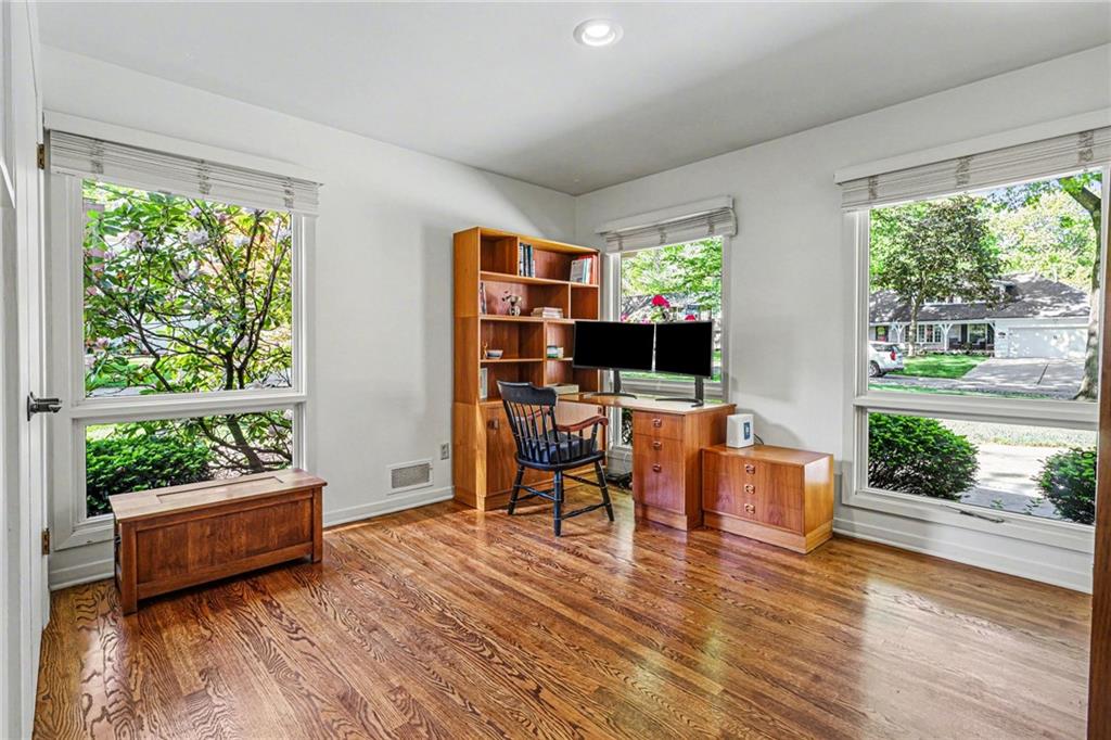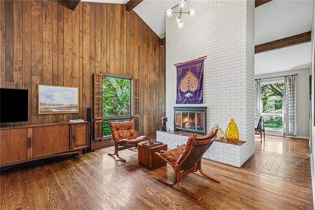Welcome home to this Prairie Village midcentury ranch home, available on the market for the first time in its history. One family loving designed and built the home in 1964 and has enjoyed decades in this oasis nestled into the heart of PV ever since. A covered front stoop and formal entryway welcome you with design nods to midcentury roots. Enter to the stunning living room with warm wood detail and statement, one-of-a-kind walk around fireplace. Oversized windows welcome in natural light. Easy flow into the dining room finds more light and bright space with a wall of floor to ceiling windows. Exposed brick fireplace offers texture and visual interest. Kitchen is meticulous with updated appliances, double ovens, plenty of cabinet and counter space for prep and entertaining and a breakfast nook you won’t want to leave with beautiful views of the backyard. Gleaming hardwoods throughout and peaceful views from every room. 3 bedrooms on the main level that include a primary bedroom with an ensuite bath. Don’t miss the bedroom windows that make simple bedrooms feel intentional and inviting. Large hall bathroom. Basement is the full footprint of the home and finished with rec room, music and workout space with built-ins, craft/hobby area plus generous storage area and workshop. Thoughtful and intentional design continues in the backyard. A natural landscape fence offers privacy while keeping nature and serenity at the forefront. Hardscaped paths invite you to slow down and enjoy the surroundings. Front circle driveway leads to a two car garage tucked into lush greenery. The combination of unique design, the weaving of nature with the home’s interior and the opportunity to call the heart of Prairie Village home awaits you here. This home offers a special opportunity for a lifestyle that doesn’t come around everyday. Don’t wait to make this one yours.