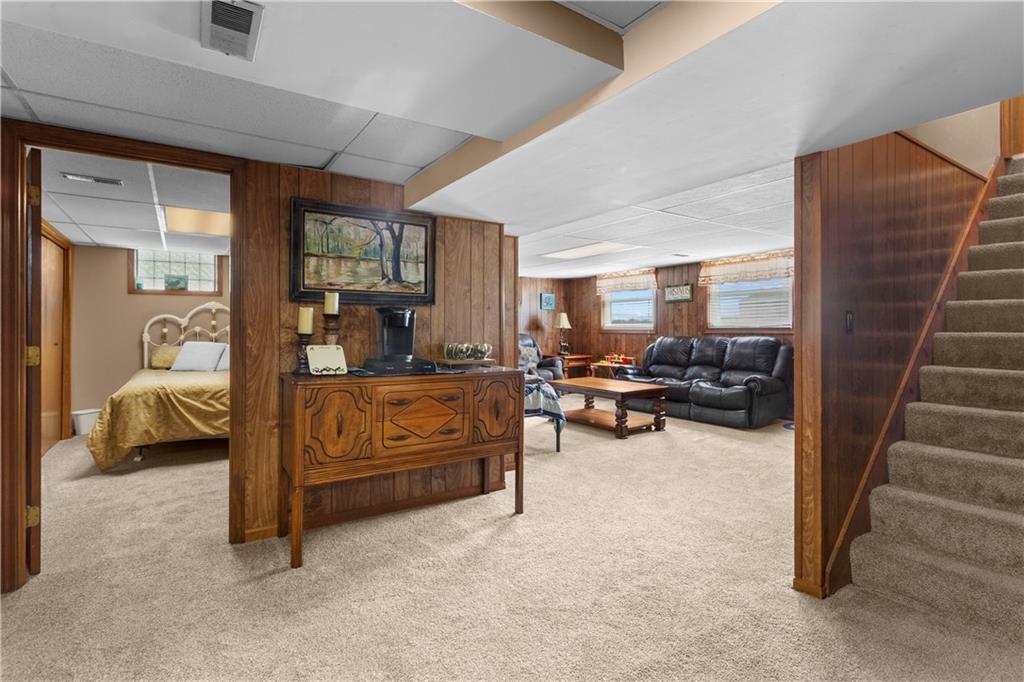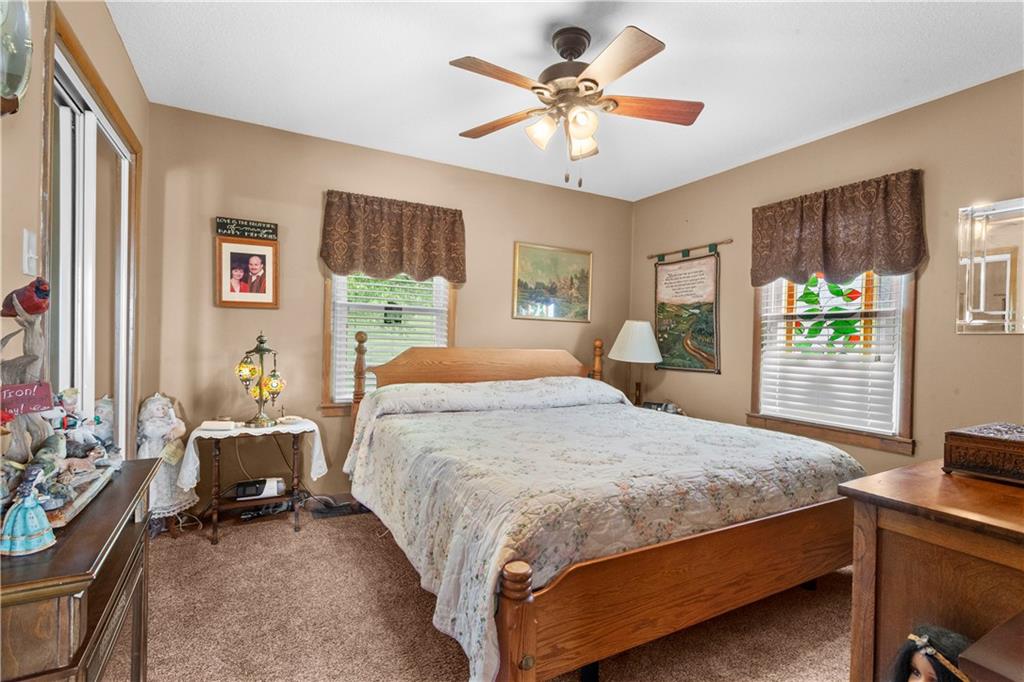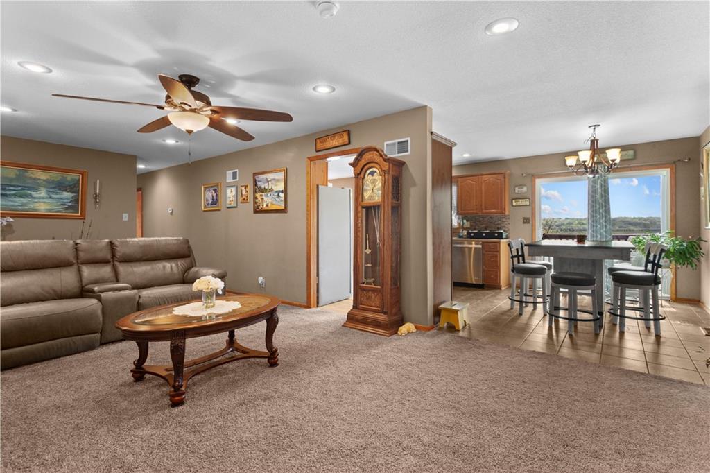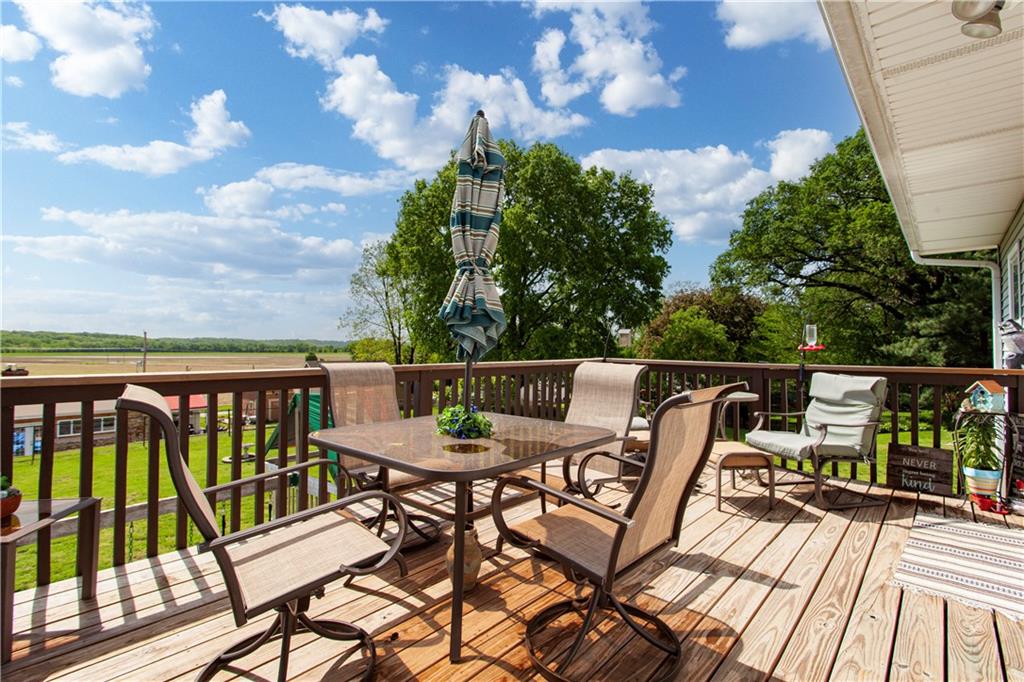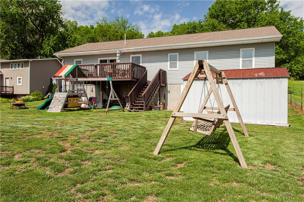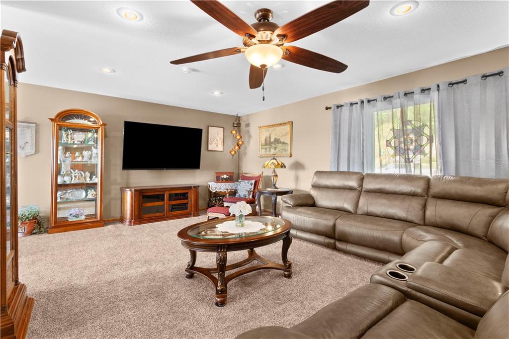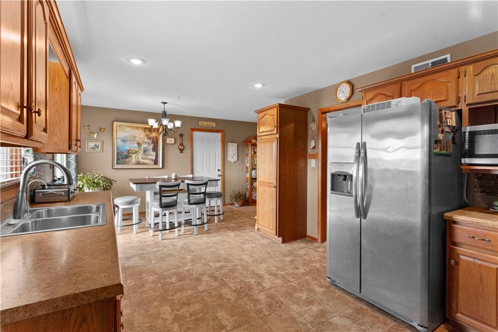 Enjoy the perfect balance of peaceful country living with the convenience of a short commute to the city in this move-in ready true ranch, offering generous space and thoughtful updates throughout. The spacious kitchen is ideal for everyday dining and entertaining, flowing seamlessly into a large, inviting living room. The main level features three bedrooms and a beautifully renovated bathroom, along with stainless steel appliances that remain with the home. The finished basement expands your living space with a sizable family room, a fourth non-conforming bedroom, and a second fully remodeled bathroom. You’ll also find a newly installed kitchenette—complete with a second refrigerator that stays—making it perfect for guests, multi-generational living, or additional convenience. There’s ample room for a craft area, workout space, and a laundry room with excellent storage options. A water softener is also installed and will remain with the home. From the rear exterior of the home, you’ll find a fully enclosed concrete safe room with all four walls constructed of cement—ideal for use as a storm shelter, workshop, or additional storage space. Spectrum Fiber has been installed and the hub is located in the garage. Step outside to a recently refinished deck, perfect for morning coffee or evening relaxation, overlooking a spacious backyard with two sheds and peaceful farmland views beyond. The home’s exterior features low-maintenance vinyl siding and brick, and all sewer lines were replaced in October 2020 for added peace of mind. The play-set in the back can stay! Located in the West Platte R-II School District, this property offers easy access to KCI Airport, the Legends shopping area, Zona Rosa, Weston, and Platte City, Leavenworth and Lansing. Situated on a quiet dead-end street, this charming home is one you won’t want to miss.