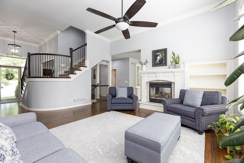 Your search is over! Everything that you want is right here in this very well-maintained, 1 1/2 story home! You will love Woodneath Farms with the spectacular amenities in the neighborhood including tennis courts, scheduled events, walkability to the pool, Mid-Continent Public Library and Shoal Creek Elementary school. Move-in ready is not an exaggeration! Stunning and comfortable this 5 bedroom, 4 1/2 bathroom home also includes a separate media room (2022), recreation room, 5th bedroom, 4th bathroom and plenty of storage in the walkout lower level. Hearth room, island kitchen with see-through fireplace was renovated in 2020. Upgrades include painted cabinetry, quartz countertops, subway tile backsplash, fireplace tile and new microwave (new gas range was added in 2022). Be sure to check out the large walk-in pantry! 7ft in length! Pleasing, stained hardwood path from front door to kitchen, formal dining/music room, hallway to garage, half bath, kitchen and table area were refinished in 2022. New carpet throughout was added in 2022. NEW roof and gutters in 2024. NEW Lennox furnace in 2023 (New Trane A/C and evaporator coil in 2017). Repainted garage, floor boards and enameled floor in 2023. AND, check out the room sizes! You will be very glad you put this home on your "MUST SEE" list!