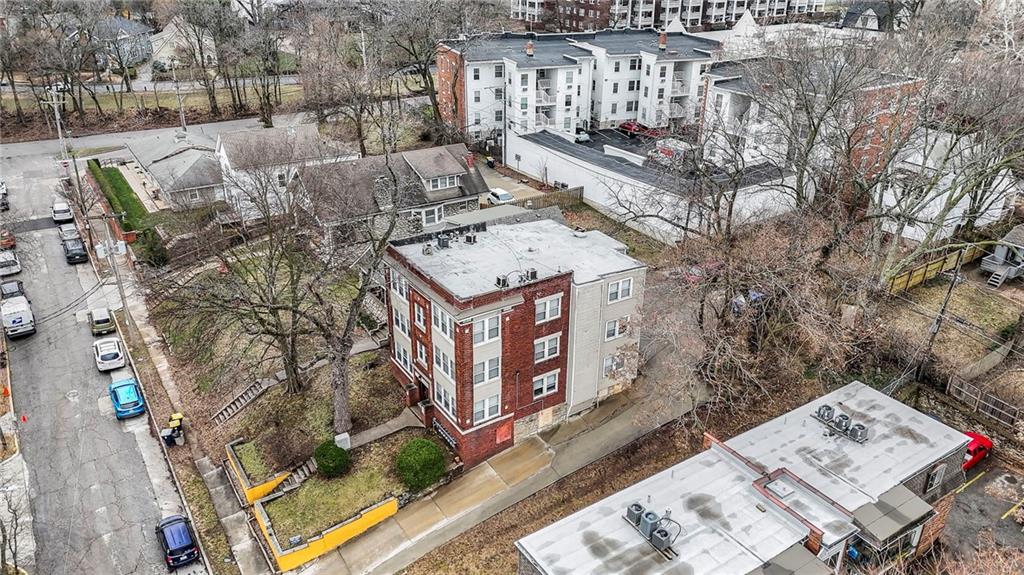 Situated in the historic Southmoreland neighborhood of Midtown Kansas City, Missouri, 4226 Locust offers a timeless blend of charm and convenience. This stately, three-story, six-unit apartment complex, built in 1917, is located just east of the new KC Streetcar line, seamlessly connecting residents to the heart of the city. The building boasts a classic brick and vinyl exterior, complemented by the practicality of six off-street parking spaces at the rear. All units are one bedroom and one bathroom with approximately 700 square feet of living space. Units are separately metered for gas and electric, with a shared water system and individual storage lockers located in the basement. Residents will appreciate the well-appointed interiors, which include hardwood floors, sunrooms, exposed brick, spacious closets, and fully equipped kitchens with gas stoves. Modern conveniences such as in-unit washers and dryers, central air, and high-end finishes like granite countertops and stainless-steel appliances elevate the living experience. The property boasts an impressive Walk Score® of 88, offering unparalleled access to Kansas City’s most sought-after attractions. Within a 15-minute walk, residents can enjoy the upscale shopping and dining of the Country Club Plaza, the cultural treasures of the Nelson-Atkins Museum of Art and the Kemper Museum of Contemporary Art, and the vibrant nightlife of Old Westport. For professionals, St. Luke’s Hospital is just steps away, while students and art enthusiasts will appreciate proximity to the Kansas City Art Institute. The newly completed KC Streetcar extension has significantly improved connectivity, with a convenient stop at 43rd Street and Main Street. This strategic addition offers direct transit access to some of the city's most vibrant districts, including the Plaza, Midtown, Downtown, and the Riverfront.