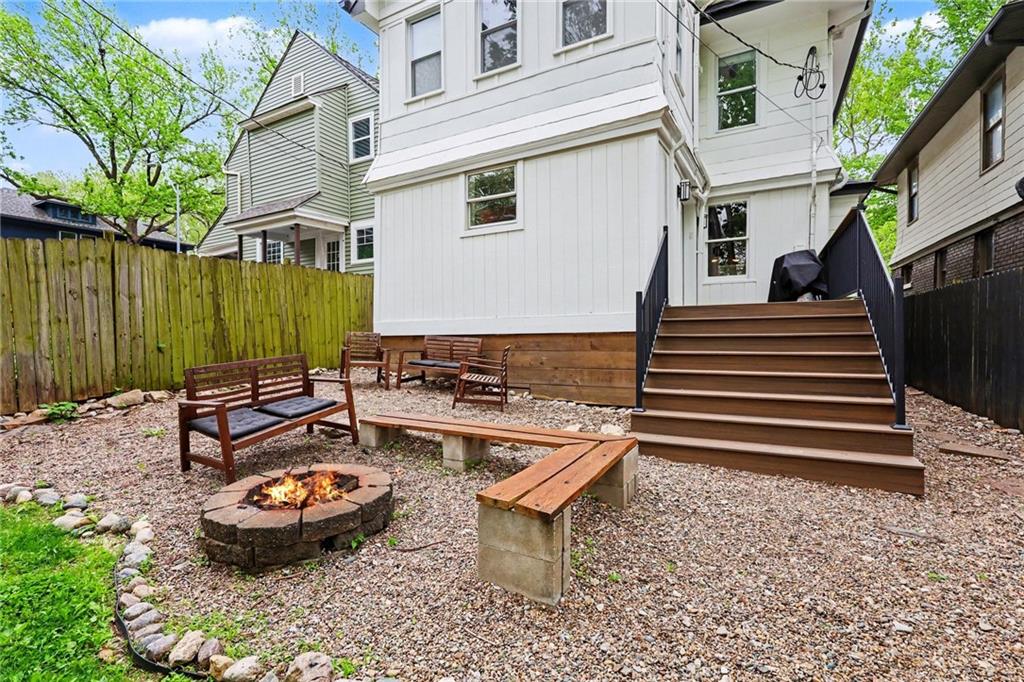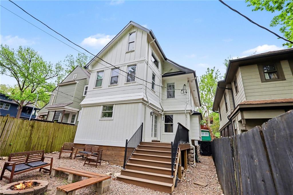 The one you’ve been waiting for is here! Welcome to this charming 3-story home in sought-after South Hyde Park, offering three levels of versatile living space. A covered front porch with a bar-height ledge creates a welcoming spot to relax or entertain. Inside, hardwood floors and a built-in storage area add both style and function. The living and dining areas flow together around a statement fireplace, creating an inviting space for everyday living and gatherings. At the rear of the home, the updated kitchen features granite countertops and opens directly to a newer composite deck. The private backyard is a blank canvas, ready for your personal touch. The main floor also includes off-kitchen laundry and a convenient half bath. Upstairs, the primary bedroom connects to a bonus room—ideal for a nursery or office—and a dual-entry ensuite with a freestanding tub and separate shower. Two additional bedrooms complete the second floor. The third floor offers even more flexibility with another bedroom and full bath, a nonconforming bedroom, and a loft/sitting area. Recent updates include a new roof, gutters, exterior paint, and HVAC. A prime location with Gillham Park, the Nelson-Atkins Museum, the Plaza and so much more nearby! Don’t miss your opportunity to make this exceptional home yours!