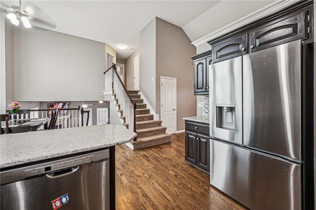 Welcome to your family's new sanctuary, an inviting Atrium Split on a corner lot that perfectly blends comfort & community! A front porch offers a warm welcome. Step inside & let the sunshine pour through a stunning wall of windows in the dining area, featuring convenient motorized blinds to set the perfect mood. An open floor plan provides ample room for family gatherings, entertaining friends, & creating lasting memories. The heart of the home is a well-appointed kitchen designed for connection, featuring ebony cabinetry, sleek granite countertops, stainless steel appliances, a spacious pantry, and a peninsula where loved ones can gather while meals are prepared. The adjacent dining area opens onto a covered deck, seamlessly extending your living space into the private backyard. Upstairs, discover a restful retreat in your Primary Suite along with the conveniently located laundry room & 2 additional bedrooms linked by a Hollywood Bath—great for shared routines. The cozy lower level is perfect for movie nights or quiet evenings by the angled gas fireplace. This space easily accesses the side patio & a nearby half bath area just off the oversized 3-car garage. Need storage? Head down to the sub-basement, which houses a brand-new HVAC system & space for all your treasures. Outside, a wood privacy fence ensures a safe and secure area for children and pets to play freely. This home is nestled in Autumn Ridge, a highly sought-after subdivision. Enjoy exceptional public amenities, including a community pool, a shady cabana with cooling fans, a playground, and even a rock climbing wall, adding endless enjoyment to this Northland property. Rest easy knowing your children can attend top-rated schools within the esteemed Park Hill School District. Plus, MCI Airport is just minutes away. Easy access to major highways (152 and I-29), commuting is a breeze. This is more than a house; it's the perfect place to call home & build your family's future.