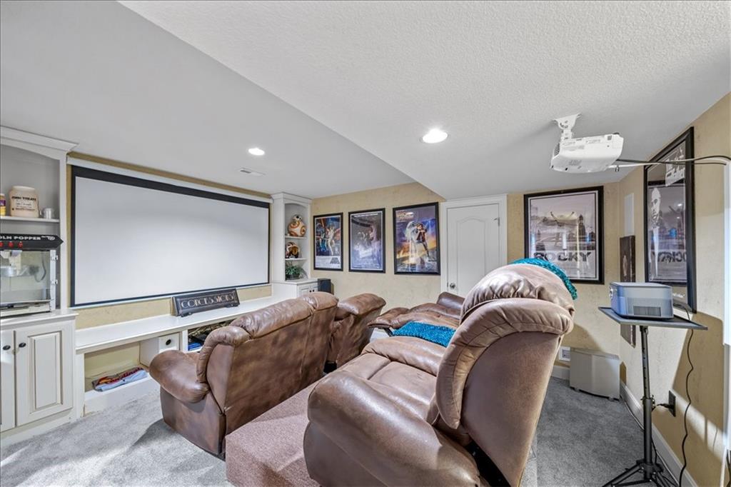 Gorgeous home loaded with upgrades, tucked at the end of a quiet cul-de-sac. Striking curb appeal with cedar accents and a full brick front porch sets the tone. Inside, refinished hardwoods and exotic granite countertops elevate the main level, complemented by a stunning see-through stone fireplace connecting the hearth room and living space. The spacious primary suite is a true retreat, featuring a massive walk-in closet, heated travertine floors, and a jetted tub. Upstairs offers a versatile loft, while new carpet spans the main and second levels. The finished lower level is built for entertaining with a granite bar, full bath, theater area and a fifth non-conforming bedroom. Outside you'll find a covered deck with a private, retreat-like setting, plus a rare exotic ironwood deck imported from India and built to last and designed to impress. Additional highlights include a heated garage with epoxy floors, newer windows throughout, updated gutters and garage doors, fresh interior paint, stainless steel appliances and dual humidifiers. Previously owned by the builder himself, this home delivers quality, character, and thoughtful upgrades throughout. A must see to fully appreciate it.