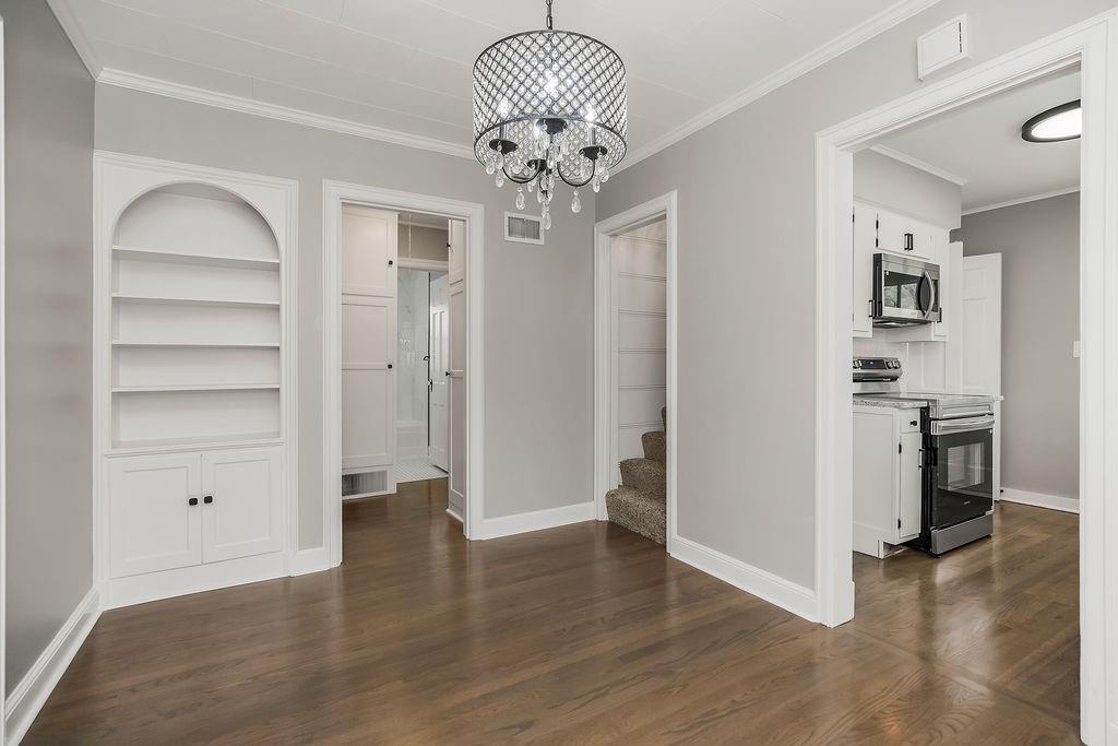 Discover the delightful allure of this 3-bedroom, 2-bathroom Ranch home, a true testament to cottage charm perfectly situated on its lot. White vinyl siding complemented by classic black accents, all framed by a welcoming white picket fence. . Step inside to be greeted by the warmth of beautifully refinished hardwood floors that extend throughout the main living areas.The heart of the home, the kitchen, has been thoughtfully refreshed to marry style with functionality. It features a crisp, white aesthetic, showcasing granite countertops, a stylish subway tile backsplash, new hardware, & stainless appliances.The formal dining room has added character with its built-in arched accents. The two main-floor bedrooms are cozy and unique, each featuring charming built-ins that add storage and architectural interest. Off the living room is a great screened-in porch, This provides an additional, cozy space perfect for morning coffee, casual dining, or simply relaxing while overlooking the backyard. It's a true extension of the living space, designed for enjoyment and entertaining in comfort.The upper level is a private and spacious master suite. This retreat maintains the home's charming appeal with more distinctive built-ins, and is accompanied by a beautifully renovated master bathroom. The lower level of the home enhances its livability, providing a cozy family space centered around a classic fireplace. This basement area is perfect for movie nights, a play area, or a comfortable den, adding valuable flexible living space.Outside, the fully fenced backyard offers multiple opportunities for outdoor enjoyment. Beyond the mature trees, you will find a paver patio, creating another designated area perfect for simply relaxing and entertaining guests in a private outdoor setting.To help potential buyers envision the full potential and charming possibilities of this home, virtually staged photos have been provided. Note: Listing Agent is related to Seller.