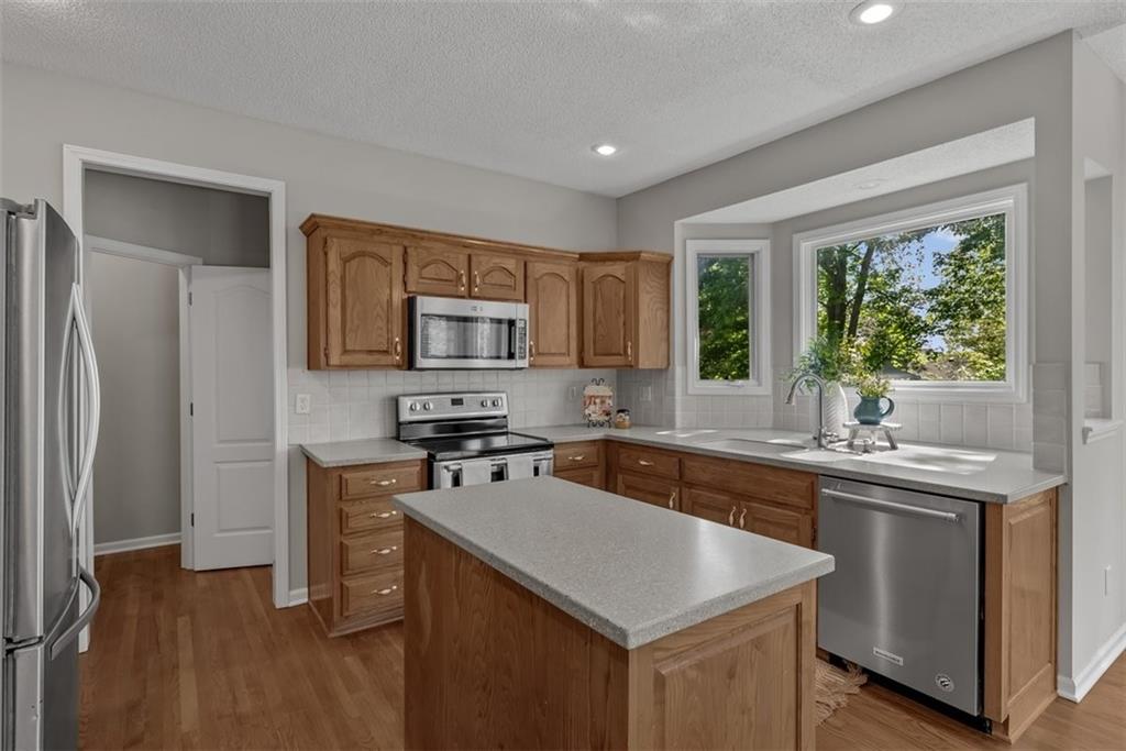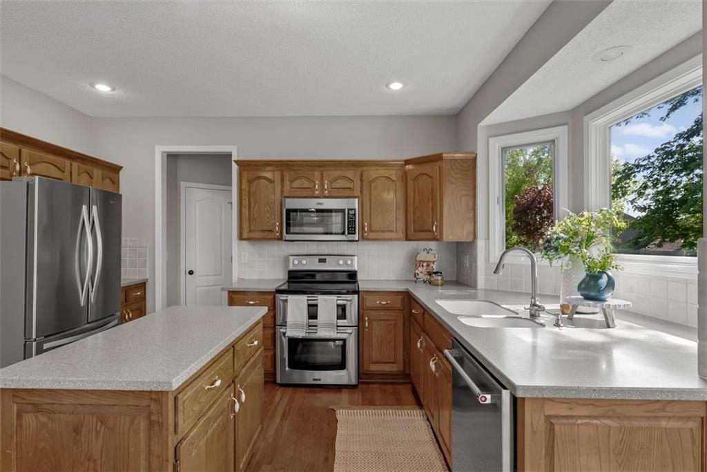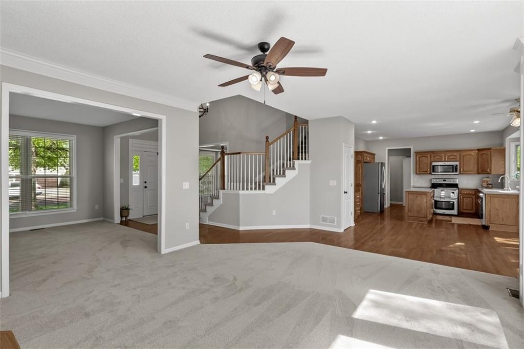 PLEASE SUBMIT ALL OFFERS BY 5PM SATURDAY, April 25 Gorgeous ~ MOVE IN READY! This 2 story home is ready for it's new owners with Brand New Carpet and Interior Paint throughout. The beautiful kitchen includes wonderful counter space, plenty of cabinets and an island. Such an easy flow between kitchen and living spaces for family and entertaining. Family room includes a beautiful fireplace for cozy nights flowing into a second, formal living room space. Hardwood floors give a warm, charming feeling to this home as well as lots of bright, natural lighting throughout. First level also includes a formal dining room, which could also be used as a study/office area. Upstairs boasts 4 large bedrooms with wonderful walk in closets! Laundry is also on the second level, in the hallway which is SO desirable! Along with the new carpet and paint the owner has added several updates including fixtures and fresh landscape. Basement is unfinished, leaving it to endless possibilities! More family living space, a personal gym, play room, rec room, more storage? Make it your own. This home is located in beautiful Overland Park with quick access to HWY69, with wonderful shopping and restaurants nearby. It is minutes to the Blue Valley Recreation Activity Center and in the Blue Valley School District. Easy to show! Schedult your tour today and ~ Welcome Home!