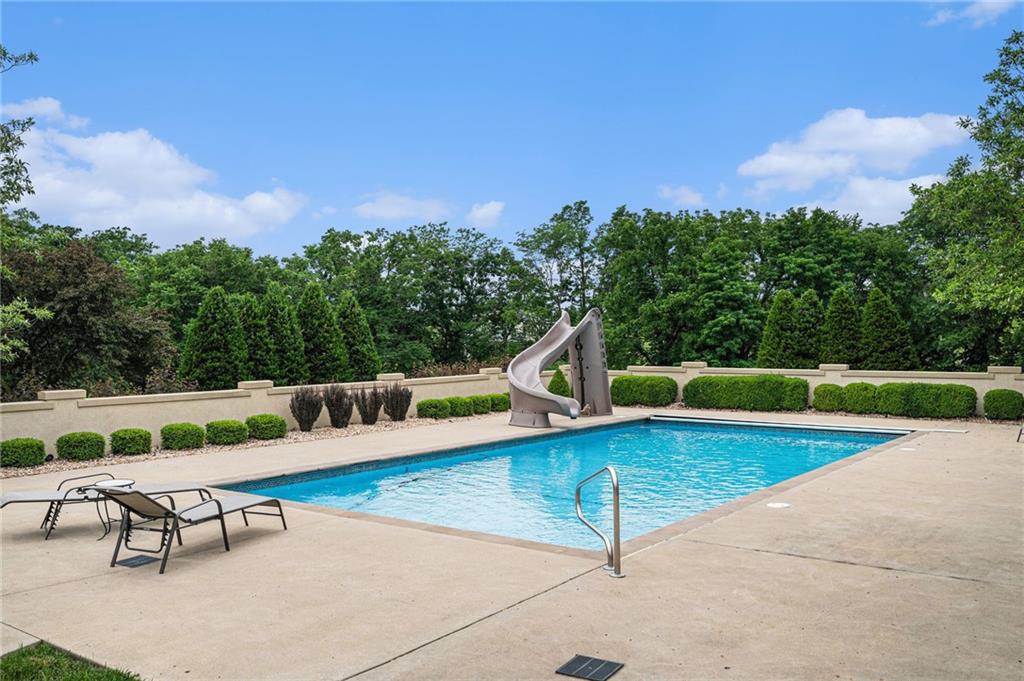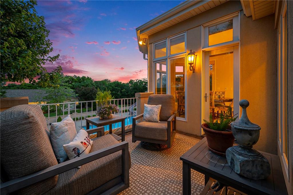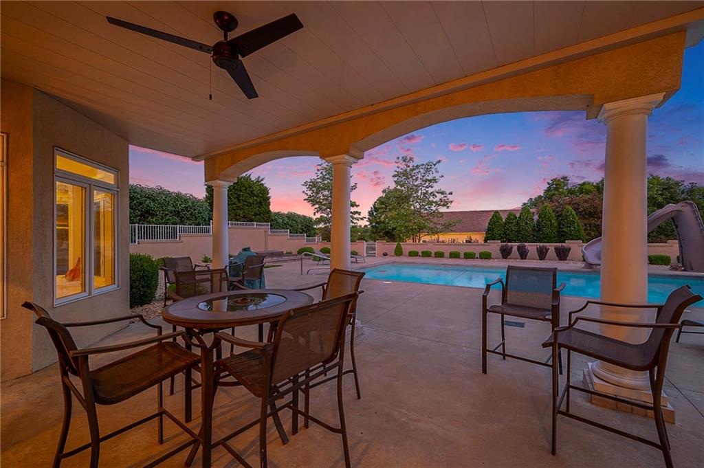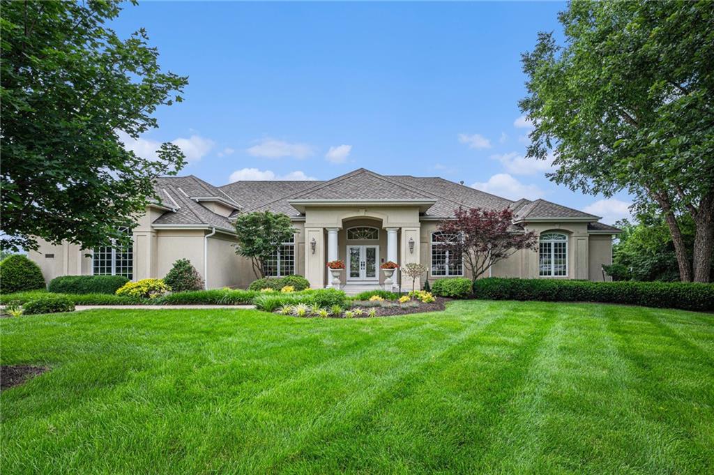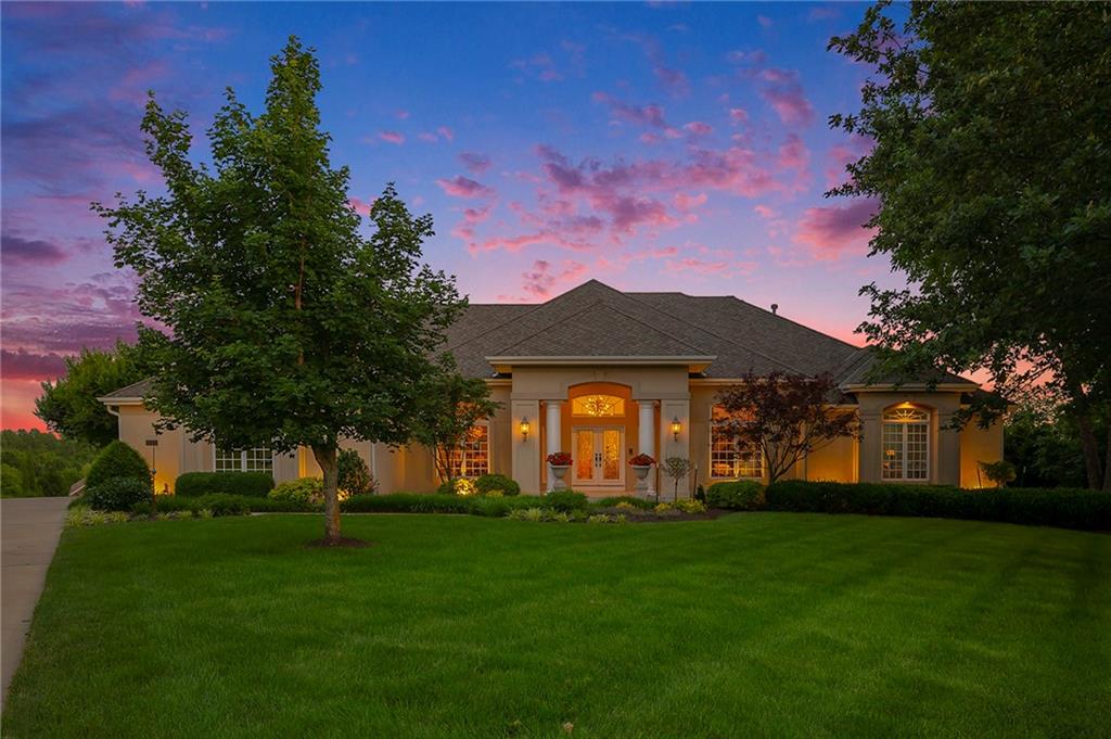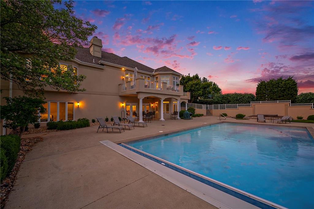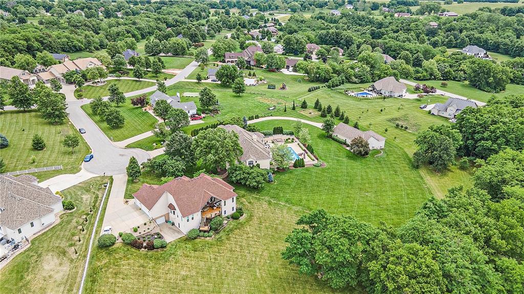 Experience tranquility and sophistication in this stunning 1.8-acre estate, ideally located just outside Kearney city limits and less than 30 minutes from downtown Kansas City, MO. Reimagined in 2021 by Portfolio Kitchen & Home, this home blends modern luxury with timeless elegance. Expansive floor-to-ceiling windows fill the main level with natural light while showcasing views of the sparkling 20’x40’ granite pool. The chef’s kitchen impresses with dual ovens, two Quartzite islands, a butler’s pantry with prep sink, Bosch and Wolf appliances, a wine refrigerator, hidden microwave and coffee station, and a spacious walk-in pantry. The lower level is perfect for entertaining, featuring a 128” projection screen with surround sound, custom wine cellar, sunken bar, exercise room, craft/dining area, and a large game space. A 60’x30’ outbuilding with an adjoining 28’x13’ RV bay includes heating, cooling, concrete floors, and a half bath. Refer to supplements for a complete list of additional features.