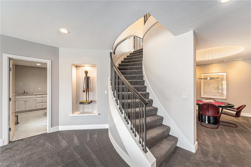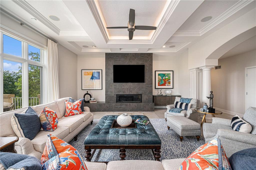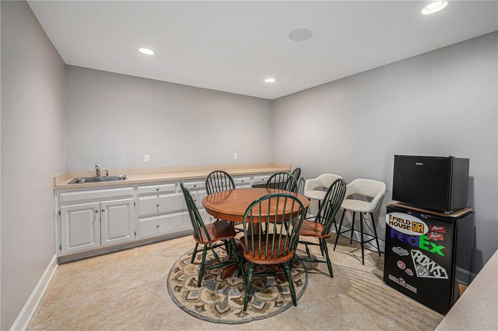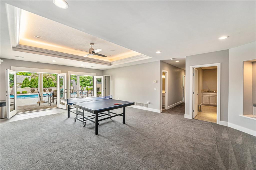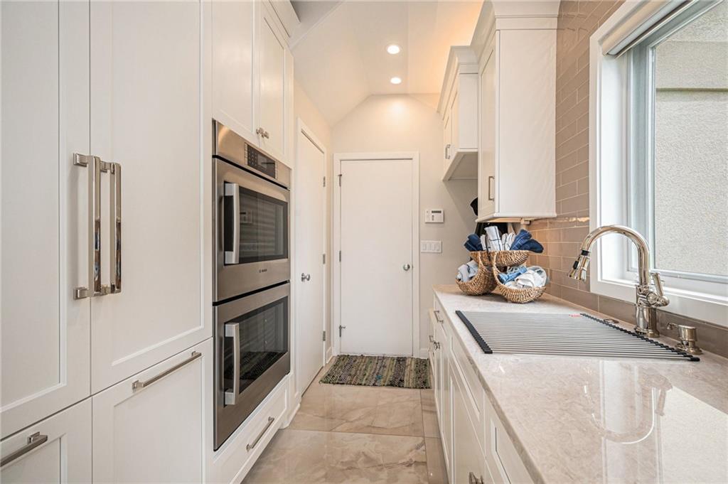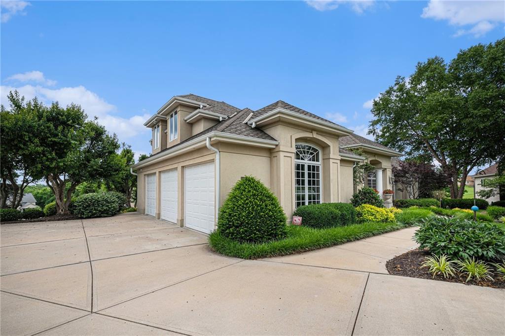 Experience tranquility and sophistication in this stunning 1.8-acre estate, ideally located just outside Kearney city limits and less than 30 minutes from downtown Kansas City, MO. Reimagined in 2021 by Portfolio Kitchen & Home, this home blends modern luxury with timeless elegance. Expansive floor-to-ceiling windows fill the main level with natural light while showcasing views of the sparkling 20’x40’ granite pool. The chef’s kitchen impresses with dual ovens, two Quartzite islands, a butler’s pantry with prep sink, Bosch and Wolf appliances, a wine refrigerator, hidden microwave and coffee station, and a spacious walk-in pantry. The lower level is perfect for entertaining, featuring a 128” projection screen with surround sound, custom wine cellar, sunken bar, exercise room, craft/dining area, and a large game space. A 60’x30’ outbuilding with an adjoining 28’x13’ RV bay includes heating, cooling, concrete floors, and a half bath. Refer to supplements for a complete list of additional features.