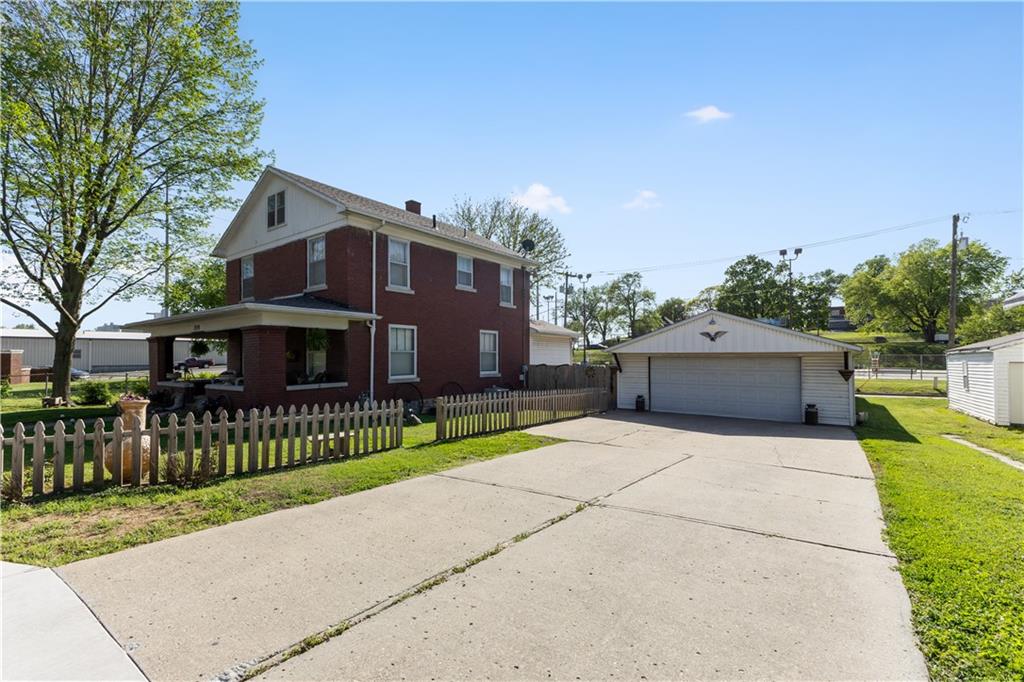 This beautiful brick home is a must-see—one of Atchison’s finest properties full of history! It features a large kitchen with appliances, main-floor laundry, and a spacious living room. The formal dining room is stunning, showcasing gorgeous woodwork and newly refinished hardwood floors. The home offers four bedrooms, two full bathrooms, and a full basement. Major updates provide peace of mind, with the central air, furnace, hot water heater, and roof all just four years old. Enjoy relaxing on the expansive front porch or entertaining on the large back deck overlooking the fenced backyard—perfect for summer gatherings. The property also includes a detached four-car garage (24 x 46), along with a new driveway and sidewalk. Don’t miss this opportunity to own a truly move-in ready home!
