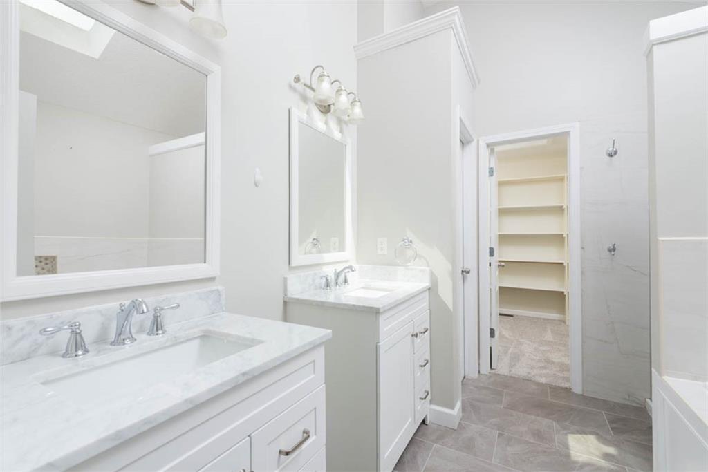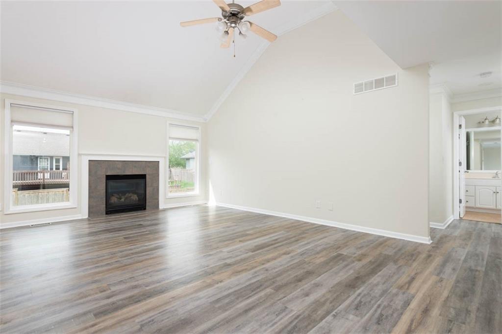 This beautiful house is rested, refreshed, and ready for its new owners!! Spacious and welcoming with great light, the living room greets you with soaring vaulted ceiling and a gas fireplace. The eat-in kitchen features wood floors, granite counters, and stainless appliances, with a walk-out door to your *covered* back deck and flat, *fenced* yard! If you need extra space for company, there's also a full dining room with a wood floor too! Primary bedroom is at one end of the hall for privacy, with NEW carpet and NEW paint - this room has a nicely updated en suite bathroom with tile floor, big tub and walk-in shower, granite double vanity, and a BIG walk-in closet. At the other end of the hall, you'll find two more bedrooms, each with ceiling fans, plus new carpet and paint! Downstairs, an easy care tiled family room walks out to patio/yard and has another gas fireplace. The basement also has that rare TRUE fourth bedroom! Big three car garage PLUS extra storage space here too for all your stuff. This house is conveniently located, with highly-rated schools, great walking nearby, easy access to shopping, dining and everything the community of Kearney has to offer!