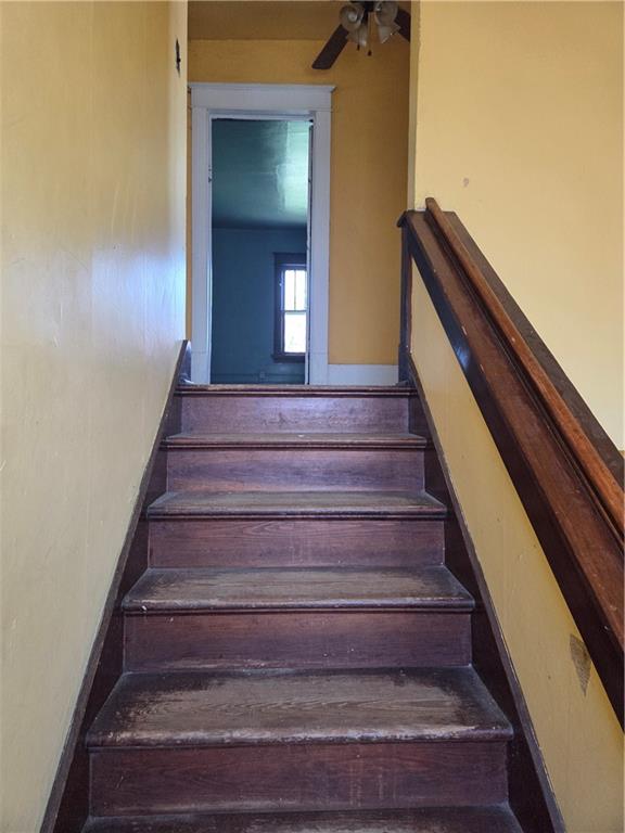 Dark wood-finish staircase with a matching wood handrail