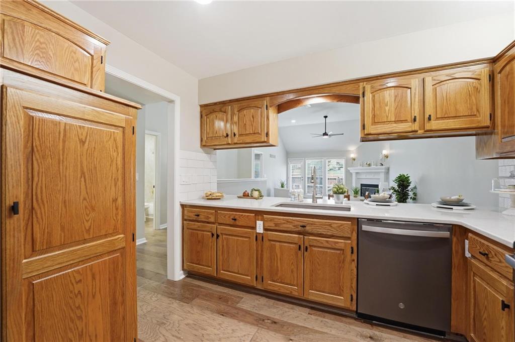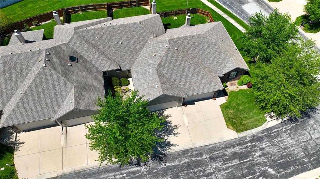 Experience effortless living in this beautifully remodeled ranch townhome featuring true main-level living, maintenance-provided convenience, and an ideal location. From the moment you enter, you’ll notice soaring vaulted ceilings, a bright airy feel, updated lighting with dimmer switches, stylish new flooring, and ceiling fans with remote controls for everyday comfort. Fresh neutral paint and thoughtful finishes make this home polished, welcoming, and move-in ready. The open-concept design creates an easy flow between the kitchen, dining, and living spaces—perfect for relaxing or entertaining. The kitchen offers quartz countertops, stainless/black appliances, and nearby main-level laundry for added convenience. The main floor includes two bedrooms and two full bathrooms, highlighted by a spacious primary suite with a quartz countertop, dual vanity, walk-in shower, and generous walk-in closet. The second main-level bathroom has also been tastefully updated, while all baths feature exquisite tile work and upscale finishes. The living room offers a striking yet comfortable atmosphere with a cozy fireplace and direct access to the private back patio and fenced yard. A convenient gate opens to additional green space beyond the fence. The finished lower level expands your living options with a large family room, a third full bathroom, and a non-conforming third bedroom—ideal for guests, office space, or hobbies. You’ll also love the oversized unfinished storage room with excellent potential for future finished square footage. Situated on a quiet cul-de-sac with a two-car garage, this home combines comfort and convenience in one exceptional package. Enjoy quick highway access with an easy commute to Kansas City International Airport, Downtown Kansas City, shopping, dining, and more—all within the desirable Staley High School attendance area.