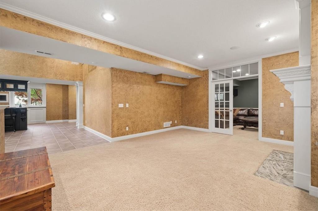 Welcome to this beautifully maintained, original-owner home in the Prairie Highlands Golf Course community, one of Kansas City's premier golf courses. This is not your typical floor plan—this custom designed home offers a distinctive layout and is presented in pristine, move-in ready condition. Offering 4 bedrooms, 4 full and 1 half baths, 4 fireplaces, finished basement and a 3-car garage. From the moment you enter, you’re greeted by a grand staircase, hardwood floors and a versatile formal living and dining space. A dedicated library/home office features built-ins, fireplace & hardwood floors. The open-concept kitchen is designed for function and gathering, walk-in pantry and connection to the breakfast area and great room—creating the true heart of the home. Upstairs, the primary suite is a retreat with a spa-inspired bath, including a walk-in shower with two shower heads, jacuzzi tub, see-through fireplace & walk-in closet. All four bedrooms are positioned along with a convenient laundry room, offering both privacy and practicality. The lower level is built for entertaining and everyday living, with daylight windows, a dedicated media room, family room with fireplace, and a well-appointed bar. Soaring 13-foot ceilings offer a full recreation setup—featuring a basketball goal and space for a future golf simulator—plus a stone-accented wine tasting room for an upscale finish. Outdoor living is equally impressive. A newer composite deck with built in lighting overlooks a beautifully landscaped yard complete with low-maintenance beds, exterior lighting, SONOS sound system & irrigation system. Roof was replaced in 2025. Additional highlights include custom blinds, plantation shutters, fountain & SONOS sound system for interior and exterior. Located within Prairie Highlands, residents enjoy a community pool, an active neighborhood lifestyle, and the convenience of an on-site restaurant & bar open to the public. Golf course access is available with membership.