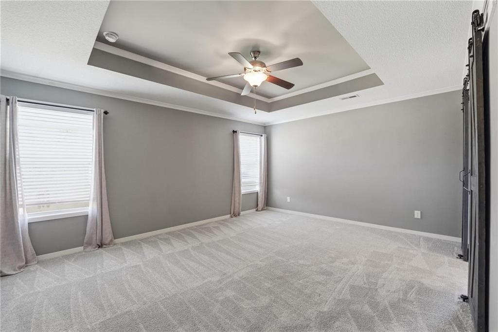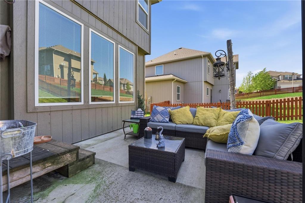 This beautifully maintained 4-bedroom, 3.1-bath home offers the perfect blend of comfort, style, and everyday functionality in a highly desirable Olathe location. From the moment you arrive, the charming front porch sets a welcoming tone, leading into a bright and airy interior with soaring ceilings and an inviting entryway. The main living area is filled with natural light and features a cozy fireplace, creating an ideal space for both relaxing and entertaining. The open-concept layout flows seamlessly into the kitchen, where granite countertops, a large island, ample cabinetry, and a new microwave make both cooking and gathering effortless. Fresh new carpet enhances the home’s clean, updated feel, while thoughtful design elements throughout provide both style and practicality. Upstairs, the spacious primary suite offers a peaceful retreat with a tray ceiling and a well-appointed en-suite bath. Additional bedrooms provide flexibility for family, guests, or home office needs. A versatile loft area with built-in shelving adds even more functional living space. Step outside to enjoy the newly landscaped yard with freshly laid sod, offering plenty of room to relax or play. The outdoor living area is perfect for entertaining, complete with a patio and outdoor TV for enjoying evenings at home. The unfinished basement presents a fantastic opportunity to customize additional living space to suit your needs. Ideally situated near shopping, dining, and everyday conveniences while still offering a quiet, neighborhood feel, this home combines location, community, and livability in one exceptional package.