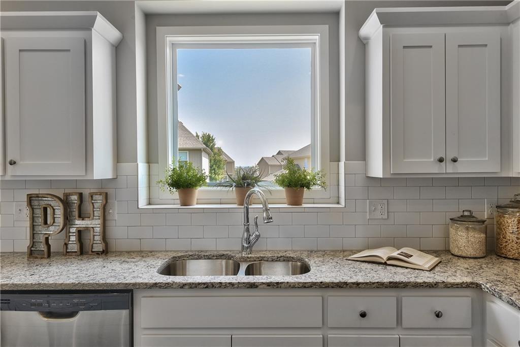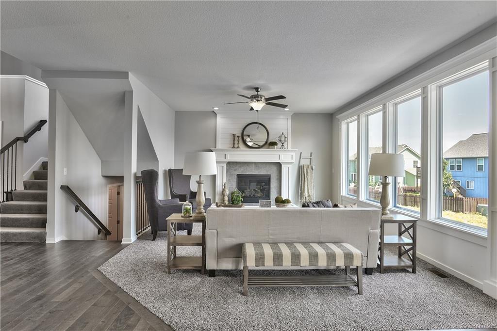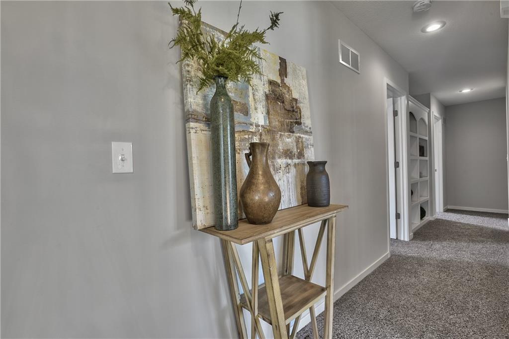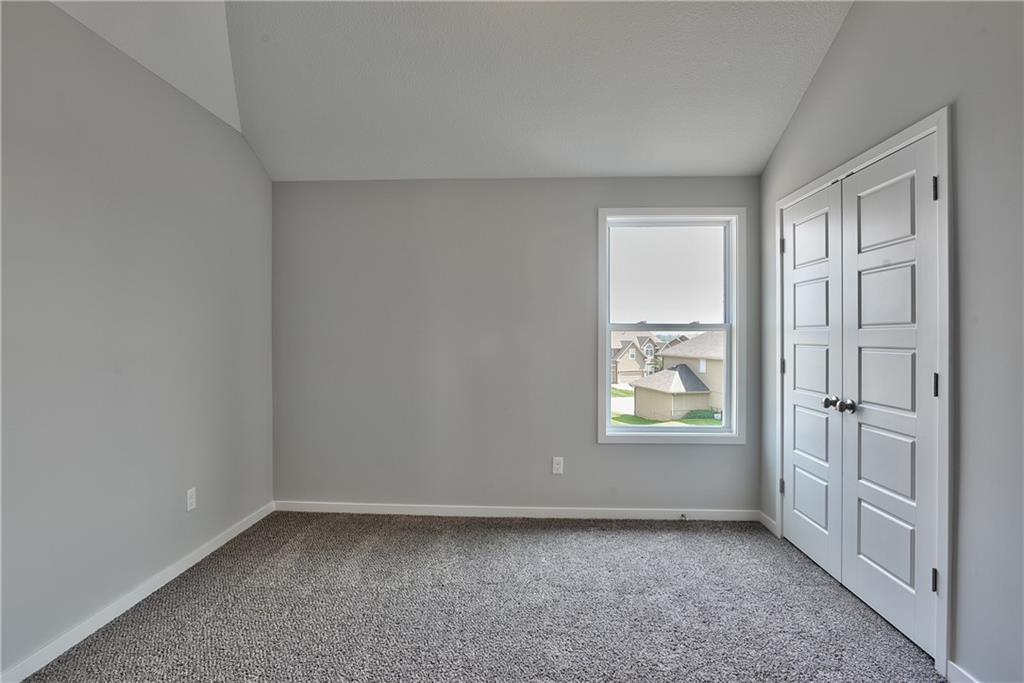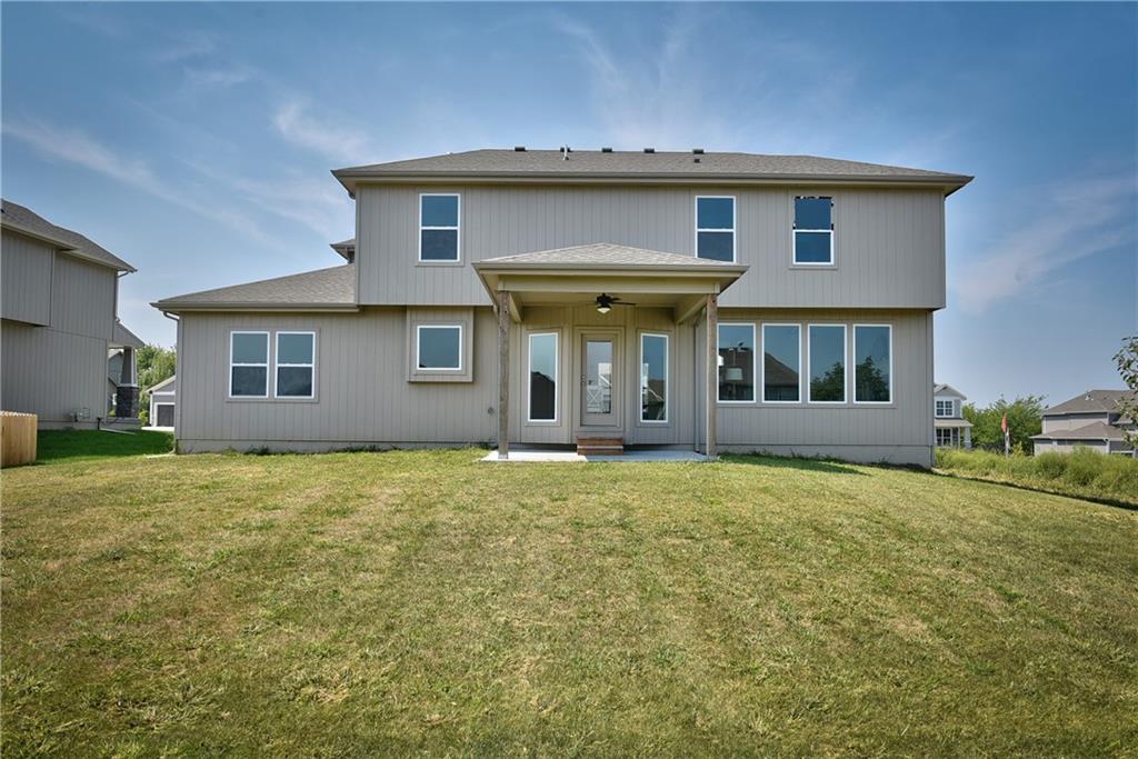Welcome to the Paxton III by Prieb Homes. This 2 story plan begins with a wonderful front porch leading you into this open floorplan. Nice entry with U-shaped staircase is open to the formal dining room with trayed ceiling. Great room with gas fireplace enjoys the natural light streaming through the windows. The center island kitchen is sure to please, featuring granite countertops, apron sink, custom cabinets with soft close drawers & doors, upgraded cabinet hardware, cabinet hood & built in microwave, stainless appliances and a large walk in pantry. Beautiful hardwood floors run throughout the entry, kitchen, breakfast room and mud room. Walk out of the breakfast room onto the covered patio to enjoy the outdoors. Large first floor guest room with closet can be used as an office, playroom, sewing/craft room, etc. Convenient 3/4 bath is adjacent to the guest room and mud room with boot bench and entry closet. Upstairs you will find three more bedrooms, one with its own private bath. The other two bedrooms share a Jack & Jill bathroom with a large vanity & double sinks. All bedrooms have vaulted ceilings. The owner's suite is a spacious room with double doors & vaulted ceiling. The lovely bath is a quiet retreat with a tiled walk-in shower, separate tub, two separate vanities, linen closet and tile floors. Attached is a large walk-in closet leading into the laundry room which is also accessible from the hallway with built-in bookshelves. Incredible unfinished basement with tons of storage and 3/4 bath stub. Three car garage and sprinkler system. Prairie Farms is adjacent to the newly renovated Lake Olathe offering tons of outdoor activities. Large community pool, cabana, play area and walking trails. Conveniently located close to schools, shopping, grocery stores, restaurants and highways. Photos are of previous homes and may show some optional features.