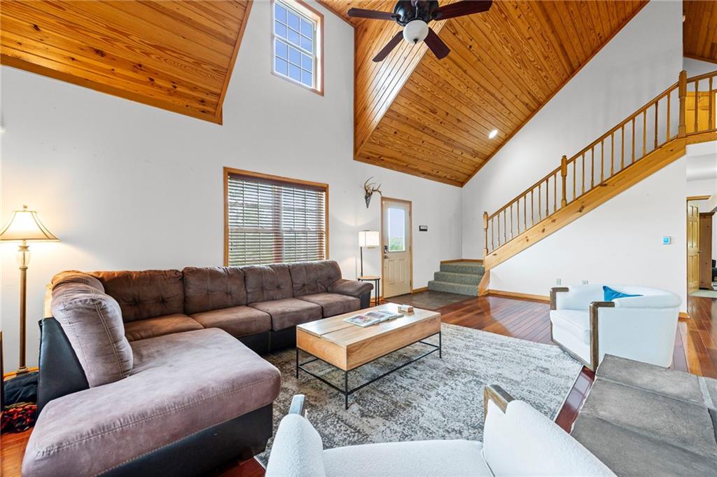 Escape to your own slice of paradise with this stunning 4-bedroom, 3-bath home nestled on 10 picturesque acres. Designed for comfort and connection with nature, this one-of-a-kind property features a spacious wrap-around deck perfect for morning coffee, sunset views, and everything in between. Step inside to find a warm and inviting living space with a breathtaking floor-to-ceiling fireplace, creating a cozy centerpiece for gatherings year-round. The open layout and expansive windows bring in natural light and offer beautiful views of your private haven. Half of the land boasts mature woods teeming with wildlife, offering peace, privacy, and exceptional hunting or hiking opportunities. The other half is productive row crop ground, giving you flexibility for farming, leasing, or expanding your homestead vision. Enjoy fresh fruit from your established fruit trees and grapevines, and discover the joy of country living with deer, turkey, and wildlife right outside your door. Whether you're looking for a family home, a weekend retreat, or a private estate, this property delivers serenity, space, and endless possibilities. Don't miss your chance to own this perfect getaway—where comfort meets nature, and every day feels like a vacation.