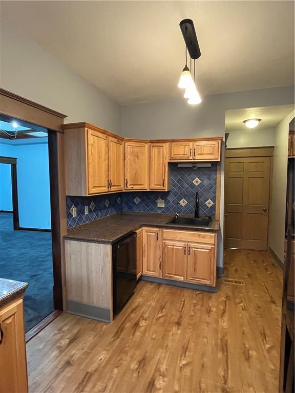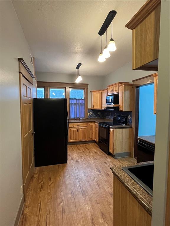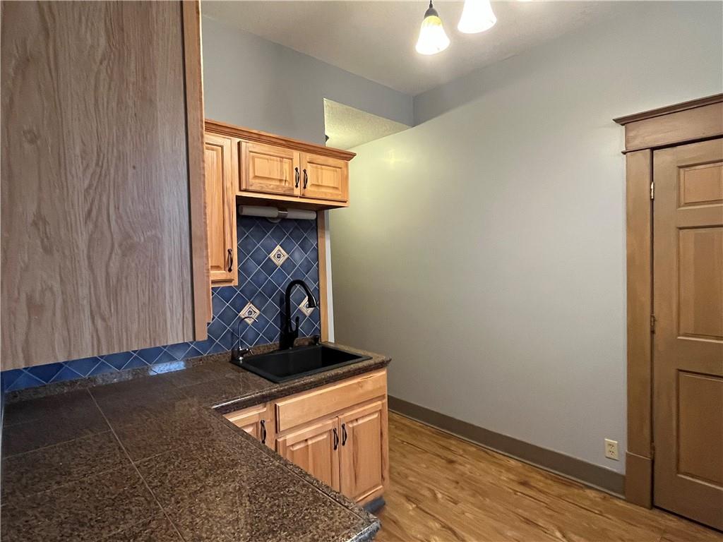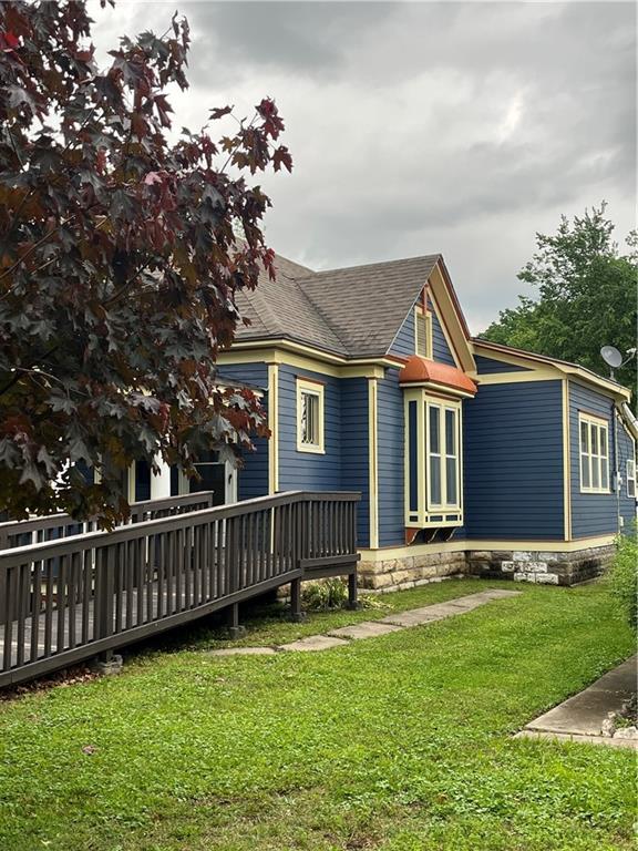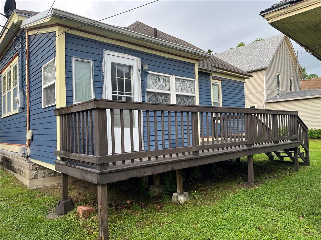 Move-in ready and full of charm, this beautifully remodeled home blends timeless character with thoughtful updates. Featuring two bedrooms and one bath, along with a spacious living and dining room. This home offers comfortable every day living, partial original wood floors, stunning woodwork, and cove ceilings with warmth and character throughout. The remodeled kitchen includes custom cabinetry, and ample storage along with cedar lined closets in the bedrooms for added appeal. The updated bathroom features a convenient walk-in shower. Enjoy peace of mind with new plumbing, updated wiring, and excellent insulation. A partial basement for extra storage space and storm shelter. Fresh paint, ramp and a spacious deck enhancing the exterior, along with alley access for convenient parking, located in a quiet neighborhood just minutes from shopping and the town square, this home is ready for you to move right in.