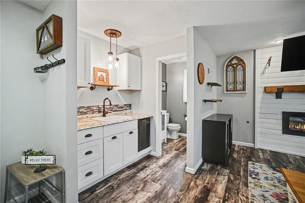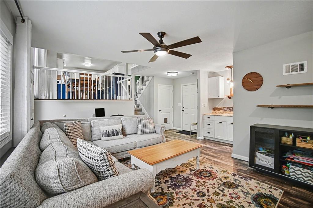The signature atrium split floor plan is the star of this home, offering distinct levels of living space that provide privacy, flexibility, and a layout that truly works for every stage of life. Rich darkwood flooring flows throughout the home, and the main living room is spacious and inviting. The kitchen delivers a bold personality of painted cabinets, new countertops, stainless steel appliances, and a deep corner sink. Upstairs, the spacious master suite offers a walk-in closet, a large vanity, and a shower. The other two bedrooms are roomy and full of character. The lower level adds another level with a fully finished farmhouse-inspired retreat. Enjoy a custom wet bar featuring granite countertops, shaker cabinets, tile backsplash, and pendant lighting. A perfect hangout area, game room, or guest space. The covered deck and large fenced-in back yard are perfect for those evenings when you want to relax. You will find plenty of storage in the sub-basement to tuck away all those items you don't need immediately. Leave your worries behind with a new roof, newer mechanicals, stainless steel appliances, and a water softener. This home is packed, polished, and ready to welcome its next chapter; all that's missing is you.