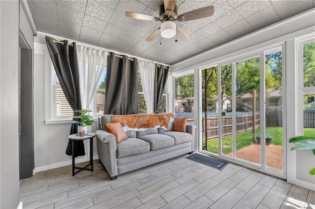 UPDATED & MOVE-IN READY - NEW WINDOWS, NEW GUTTERS, FRESH PAINT & MORE! Completely remodeled in 2023, this stylish 3-bedroom, 2-bath home is designed for effortless living and entertaining, offering modern finishes, a thoughtful design, and instant equity thanks to pricing well below recent appraisal. A bright, open-concept layout showcases hardwood floors, a custom fireplace, and a beautifully updated kitchen with new cabinetry, upgraded appliances, and a standout wet bar featuring a wine cooler, beverage fridge, and extra storage—perfect for hosting or relaxing at home. The remodeled sunroom offers a light-filled retreat ideal for morning coffee, evening gatherings, or a quiet work-from-home space. Step outside to a private backyard featuring a large textured concrete patio, bistro lighting, and a privacy fence, creating the perfect setting for outdoor dining, entertaining friends, or unwinding at the end of the day. The home is designed for single level living with laundry hookups on the main floor and an unfinished basement provides excellent future expansion and value-add potential. Upgrades include a newly installed security system for peace of mind, fresh paint, all new windows, upgraded retaining wall, and more! Every detail has been thoughtfully updated to deliver a home that feels modern, comfortable, and truly move-in ready—ideal for buyers seeking a home that supports both everyday living and a vibrant lifestyle.