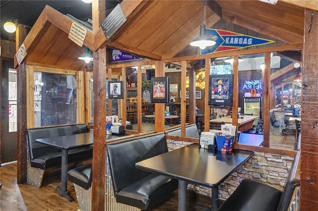 Turnkey opportunity! Operating Trade Winds Bar & Grill, established in 1991, located in historic downtown Garnett, KS. Conveniently situated approximately one hour south of Kansas City, offering easy access for owners, staff, and customers. This well-established restaurant has seen extensive updates, including a new roof, updated wiring, and a full remodel in 2019. The interior features updated booths, refreshed flooring, a full bar area, and a spacious dining area designed to accommodate busy service hours. The kitchen layout is functional and efficient, with dedicated prep and service areas to support daily operations. Most equipment is newer and will remain with the property, making this a true turnkey operation. Additional highlights include an ice room, improved accessibility with new ramps at both the front and rear entrances, and a layout ideal for continued restaurant use. Upstairs offers a 1-bedroom apartment, providing excellent income potential or owner occupancy, with the possibility for additional living space. A rare chance to own a long-standing, well-known establishment with a strong presence in the community and room for continued success!