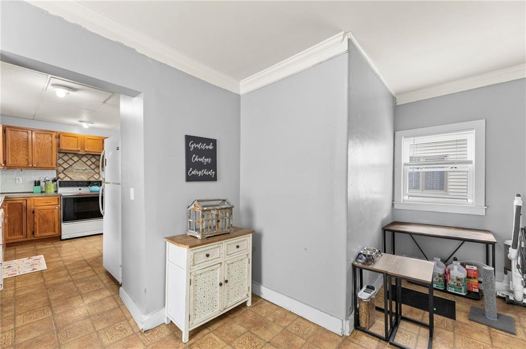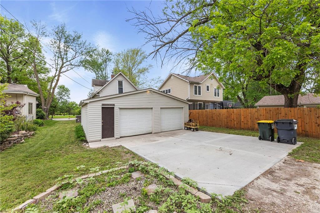 Nestled in a prime location just a short stroll from the charm of the historic Paola square, this adorable two-bedroom, two-bathroom home offers a perfect blend of modern convenience and classic appeal. The main level welcomes you with an expansive family room that flows effortlessly into an open concept kitchen and dining area with loads of cabinets and all appliances staying, creating an ideal layout for both daily living and effortless entertaining. Main level bathroom features a huge, tiled shower. Upstairs, you will find two generously sized bedrooms and a second full bathroom, providing a private and comfortable retreat. Car enthusiasts or those seeking extra storage will appreciate the wonderful, newer two-car attached garage that adds significant value to the property. The home's exterior has been meticulously maintained, featuring a comprehensive refresh in 2020 that included scraping and repainting the siding along with the installation of new gutters, newer windows 2022 and central heat and air. Beyond the walls, a lovely yard awaits, offering the perfect backdrop for summer barbecues and outdoor relaxation. This move-in-ready gem combines a fantastic layout with a sought-after neighborhood setting; don't miss your chance to own a piece of Paola history, as a home this well-cared-for truly won't last long on the market.