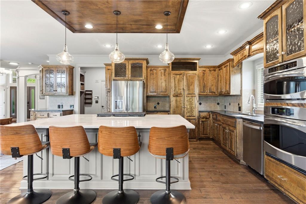 Tucked away at the end of a quiet cul-de-sac located in Cedar Creek, this stunning 5-bedroom, 4-bath home offers over 4,000 square feet of thoughtfully designed living space. From the moment you step inside, you’ll be welcomed by an open floor plan that seamlessly blends comfort and style—perfect for both everyday living and entertaining. At the heart of the home is an incredible kitchen featuring an oversized island that serves as a true gathering place, ideal for hosting family and friends. Spacious living areas, nice sized bedrooms, and a versatile bonus room provide flexibility for any lifestyle. Step outside and discover what truly sets this home apart: a private backyard oasis designed for relaxation and entertaining. Enjoy the beautifully crafted gunite pool complete with striking water features and a tanning ledge, creating a resort-like experience right at home. The outdoor space is further enhanced by a stone fireplace and a beautiful stone built bar area—perfect for year-round enjoyment. This home has been meticulously maintained and thoughtfully updated with the larger ticket items, offering peace of mind for years to come. Recent improvements include a new driveway and carpeting throughout (2025), new AC units, updated all countertops in the kitchen, bar, and bathroom on main floor, as well as new garage doors and fresh exterior paint (2024). The new roof and upgraded oversized gutters were also installed recently in 2023.