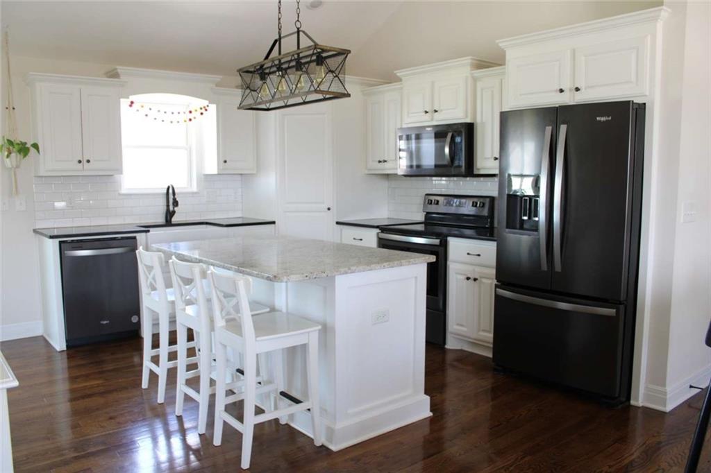 Welcome to 1206 Viola St, a light-filled, thoughtfully upgraded home in Smithville’s Wildflower subdivision. Step inside, and the open layout draws you into a space that feels effortlessly cozy and yet modern. The kitchen is the heart of it all with white custom cabinets, granite countertops, a farmhouse sink, tile backsplash, a kitchen island with seating, a generous pantry, and black stainless Whirlpool appliances. Rich hardwood runs through the main living areas, anchored by a fireplace with a custom white tile surround and mantle. Step onto the covered deck, fitted with a ceiling fan overhead and an open sky beyond. Wake up to sunrise views over farmland, watch the seasons change across a working farm, and end your evenings under sunsets that have to be seen to be believed. No rear neighbors. Just open sky. Each upstairs bedroom features a tray ceiling and a ceiling fan. The primary suite includes two windows, a walk-in closet with built-in shelving, and a private en suite with a double granite vanity and subway tile shower. A full hall bath with subway tile tub surround and granite vanity serves the main level. The finished lower level expands your living space with a large living room, a fourth bedroom with an egress window, a closet, and direct access to a half bath, and a built-in mudroom nook off the garage entrance. The under-stair storage room holds 27 full-sized bins, giving you plenty of storage space. The oversized 2-car garage provides direct access to the lower level. At 1,808 sq ft on a 0.36-acre lot, this home is walkable to Eagle Heights Elementary and sits in the highly regarded Smithville school district, all with no HOA. Beyond the neighborhood, you're minutes from Smithville Lake and its 60+ miles of scenic trails. Built in 2018 with custom finishes throughout, this kind of home won’t last long. Built in 2018 with custom finishes throughout, this kind of home won’t last long. Refrigerator does not convey.