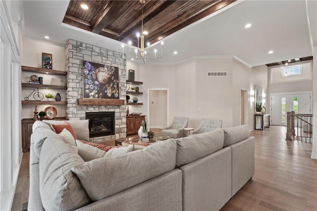 Park Ridge Homes presents theThe Lariat II , a beautifully crafted reverse 1.5-story home in the highly sought-after Park Ridge Manor Community. Designed with both style and function in mind, this 3-bedroom, 3-bath home offers a seamless blend of comfort and sophistication, paired with the ease of maintenance-provided living. Step inside to soaring ceilings with rich wood details and a light-filled open layout that immediately feels like home. The heart of the space is the stunning kitchen, anchored by an oversized waterfall granite island perfect for gathering, entertaining, or everyday living. A thoughtfully designed pantry and beverage area add both beauty and convenience. The main-level primary suite is a true retreat, featuring a statement feature wall, an expansive walk-in closet, and direct access to the laundry room. A secondary bedroom and flex room provide ideal space for guests, work, or hobbies. Downstairs, the walkout lower level is built for entertaining with a spacious rec room, stylish bar area, two additional bedrooms, and ample storage. Enjoy peaceful mornings or relaxed evenings on the covered deck, all while benefiting from a maintenance-provided lifestyle including lawn care, snow removal, and trash PLUS access to Park Ridge Manor’s premier amenities.