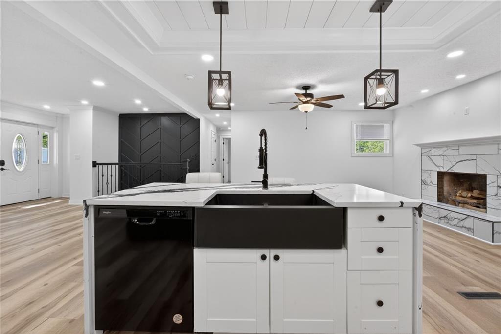 Welcome to this beautiful reverse ranch home! This move-in ready property features 3 bedrooms, 3 full bathrooms, and a 3-car garage with rear entry. Enjoy a modern open kitchen with elegant marble countertops, perfect for cooking and entertaining. The fully finished basement offers a spacious family room, ideal for gatherings or additional living space. The home has been completely remodeled and sits on a generous yard, providing plenty of outdoor space. Don't miss the opportunity to make it yours!