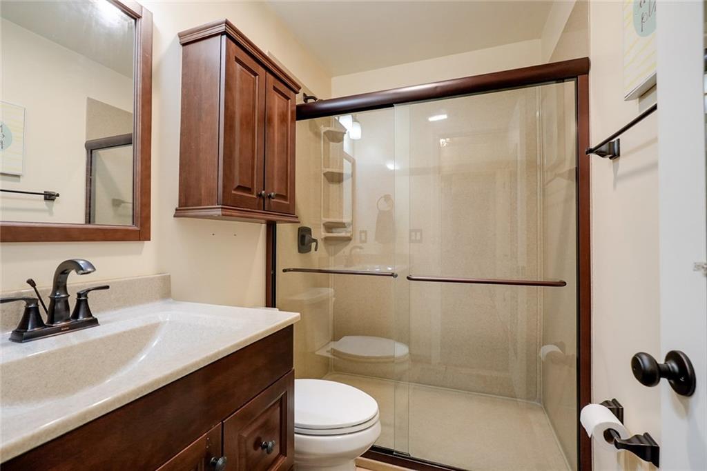 Welcome home to this beautifully updated 3-bedroom, 2-bath ranch that truly has it all. From the moment you arrive, you’ll be impressed by the exceptional curb appeal and thoughtfully designed front and back landscaping that sets the tone for what’s inside. Step into a fully remodeled kitchen featuring solid wood cabinetry, a timeless neutral palette, stainless steel appliances, and quality finishes throughout. Many appliances—including the refrigerator, gas range, dishwasher, microwave, washer, and dryer—are all under five years old and remain with the home, offering both style and convenience. Hardwood floors flow through the main level, where you’ll find two generously sized bedrooms with great closet space and a beautifully updated full bath featuring an Onyx shower system, solid surface sink, and oil-rubbed bronze fixtures. The finished walkout basement expands your living space with a spacious rec room perfect for entertaining, along with a third bedroom and a second full bath with a shower—ideal for guests or extended living. Step outside to enjoy the newer brick patio with a covered roof, creating the perfect outdoor retreat for relaxing or hosting gatherings. Major updates have all been taken care of, with mechanicals, windows, and big ticket items all under 10 years old, plus the added benefit of a gutter protection system. This home has been meticulously maintained with attention to every detail—there’s truly nothing left to do but move in and enjoy.