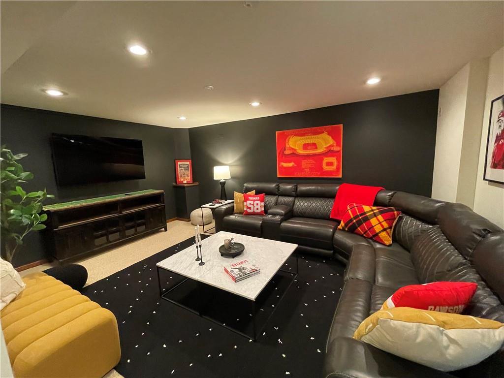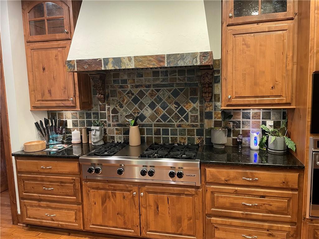 Discover the Allure of Elevated Living in this Impressive Updated Colorado-Style Home Nestled in the heart of Kansas City North, the two-story residence in Maple Park Estates radiates charm and sophistication, effortlessly blending the serene beauty of nature-immersed living with modern convenience. If you seek a haven perfect for both entertaining and unwinding from the daily grind, this home is a sanctuary designed to elevate your lifestyle. As you step inside, you are greeted by exquisite hand-textured hardwood floors that complement the expansive and unique open floor plan. A floor-to-ceiling glass wall at the rear of the home invites the stunning beauty of nature into your living space, creating an ambiance that feels as though you are nestled within a tranquil mountain range. The chef-inspired custom kitchen is a culinary oasis, featuring luxe appliances and extensive custom cabinetry, seamlessly integrated to match the refrigerator, ensuring a cohesive and polished look. Adjacent to the kitchen, you'll find a large dining area that leads to library/office with tailored bookcases specifically designed for the remarkable space. Unwind in the great room with a striking stone fireplace that sets the stage for the lodge feel. This space is perfect for relaxation or hosting cherished moments with family & friends.Venturing downstairs, the finished basement provides additional living & entertaining areas, providing ample space for gatherings or cozy nights in. The thoughtful layout includes an abundance of storage, a stylish wet bar, and a versatile bonus room that can serve as a personal gym or an extra sleeping area. Throughout this magnificent home, there are numerous upgrades that enhance its allure, including a new HVAC system, updated windows, fresh carpet, and a fresh coat of paint. Every detail has been meticulously considered, making this residence truly move-in ready.Experience luxury living at its finest in this stunning Colorado-style home.