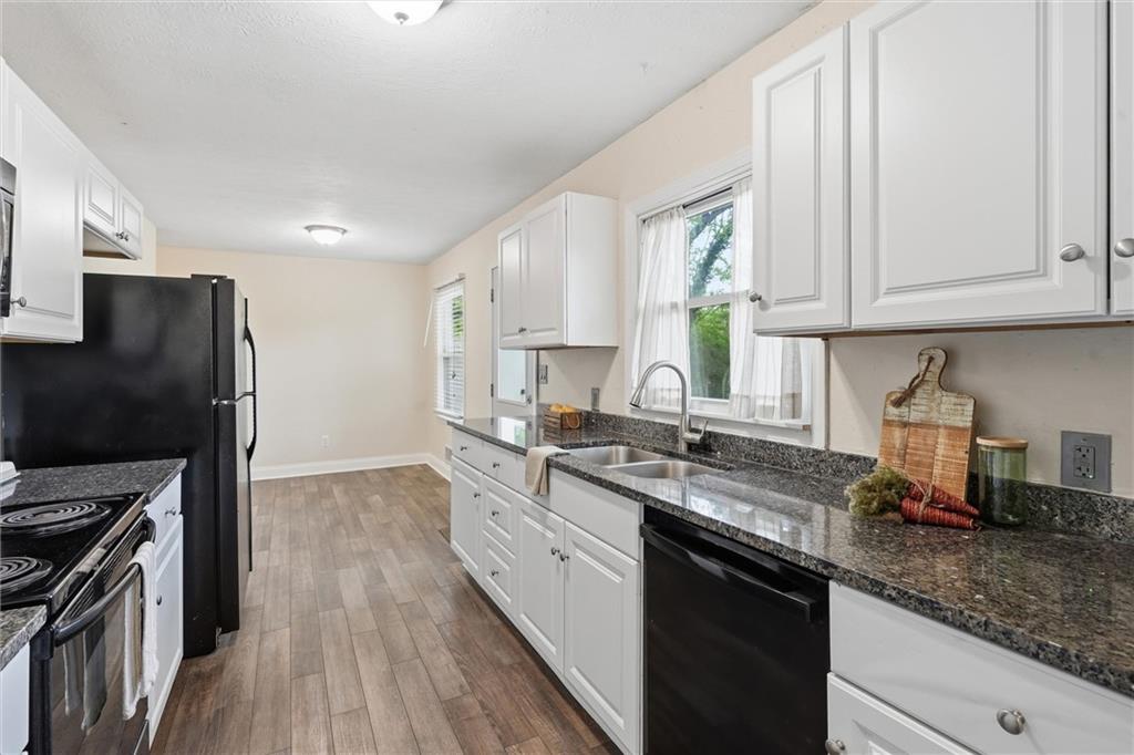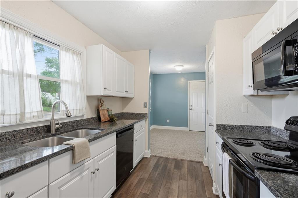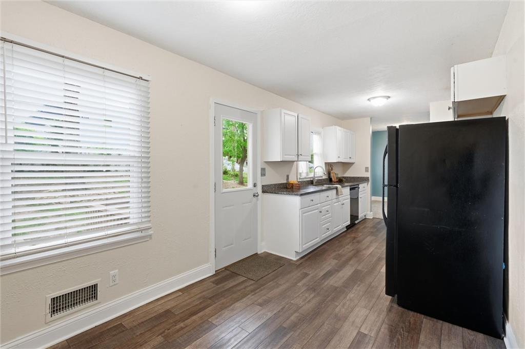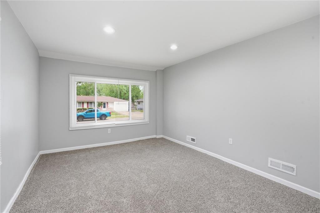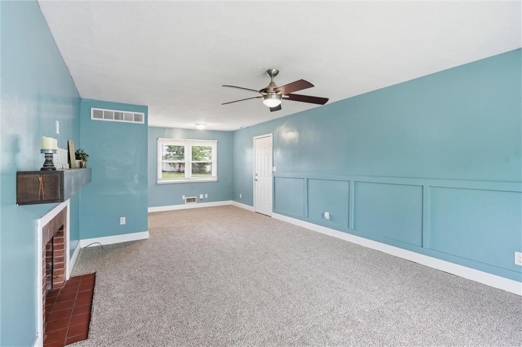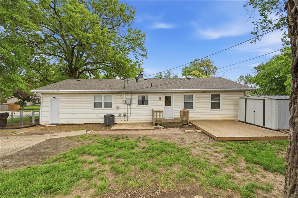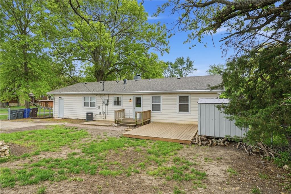 Located in Lawrence, this beautiful ranch sits on a spacious corner lot and offers charming curb appeal with stone accents and a cheerful blue front door. Step inside to find a light-filled family room just off the entry, featuring large picture windows that flood the space with natural light. The adjoining dining area flows seamlessly into the galley kitchen, which also includes a cozy eat-in space perfect for everyday living and entertaining. One of the standout features of this home is the additional primary suite, thoughtfully situated on the opposite side of the home from the other three bedrooms, offering privacy and flexibility. The primary suite (a thoughful addition never a garage) is generously sized with a walk-in closet and convenient access to the laundry room. A well-placed half bath serves guests with ease, while the layout provides both comfort and functionality throughout. Step outside to enjoy the spacious backyard, complete with a shed and plenty of room for summer barbecues, outdoor activities, and play. Living in Lawrence means enjoying a vibrant community filled with local restaurants, shopping, and year-round activities. Not to mention being just minutes from University of Kansas and cheering on your beloved KU Jayhawks.