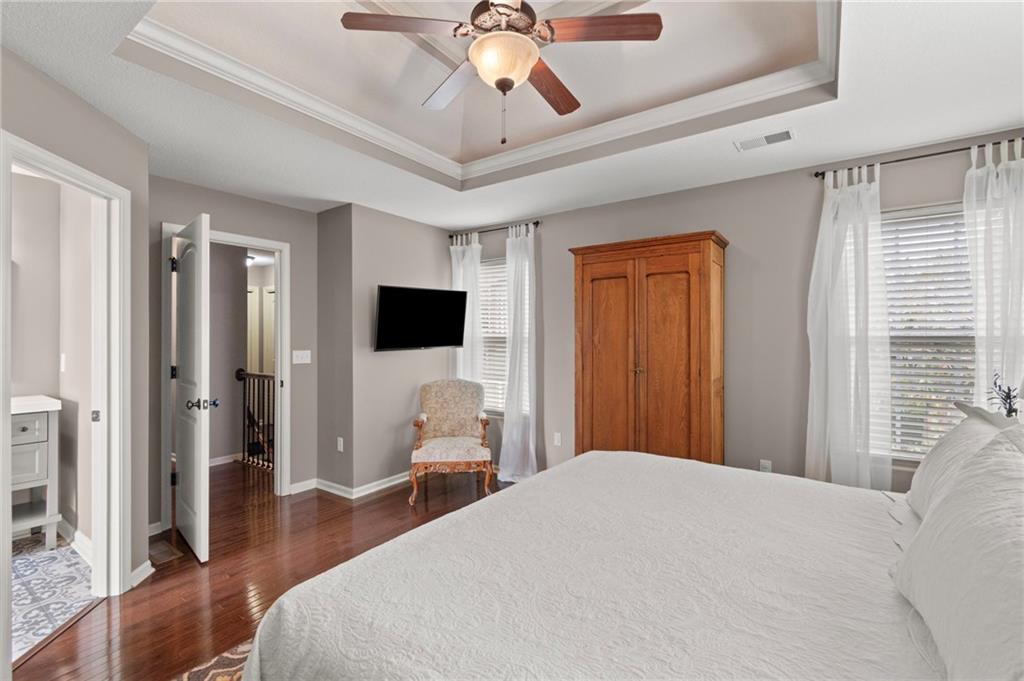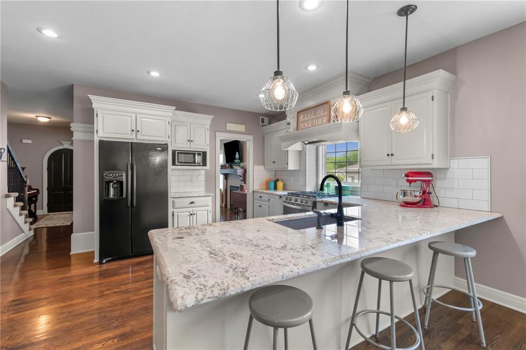 Welcome to this stunning Spanish-style two-story home that has been beautifully updated from top to bottom! Step inside to find gleaming hardwood floors throughout, carpet only on the stairs. Fresh interior and exterior paint, and a show-stopping kitchen featuring new granite countertops, freshly painted cabinets, a new gas range, and new dishwasher. The living room invites you to cozy up by the fireplace complete with a heat recirculator and classic plantation shutters. Upstairs, the primary suite is a true retreat featuring a spacious walk-in closet and a fully remodeled en-suite bath with double vanity, new tile, soaker tub, and glass shower surround. Two additional bedrooms share an updated Jack and Jill bath, and laundry is conveniently located on the upper level. Washer and dryer stay! Out back, enjoy peaceful mornings and evening grilling from your covered breezeway connecting the two-car garage, all while taking in the wooded backdrop and abundant wildlife. Fresh new landscaping adds incredible curb appeal to complete this picture-perfect package. With a 1-year-old roof, newer HVAC, an unfinished basement ready for your vision, award-winning Liberty Public Schools, proximity to downtown Liberty shops, walking trails, and easy highway access, this home truly has it all!