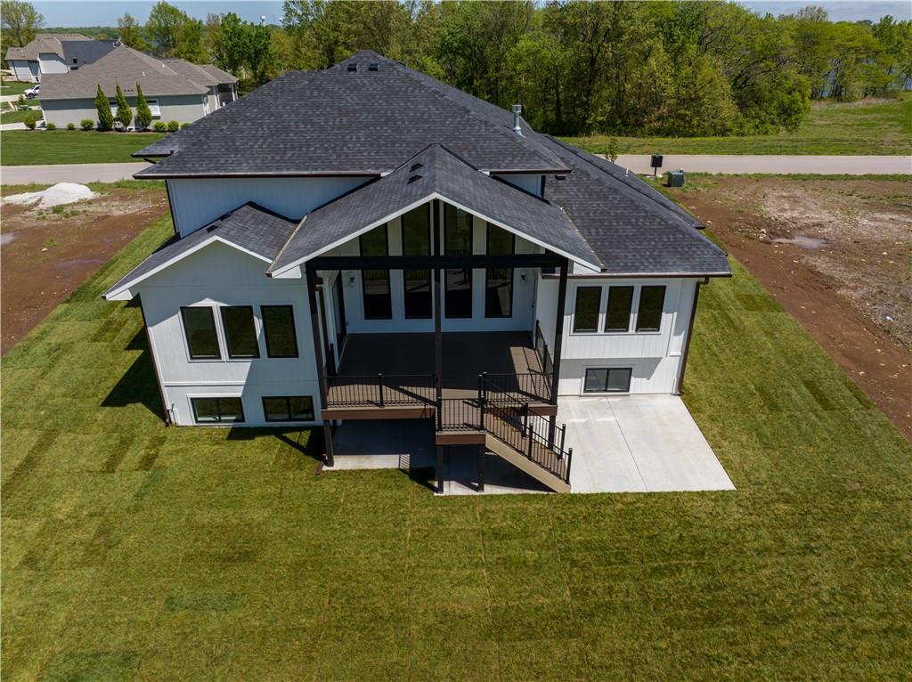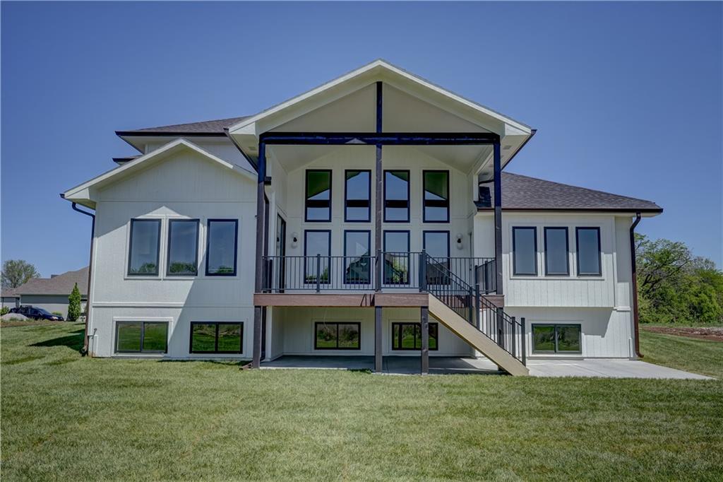 Welcome to a truly exceptional custom-built home by KC Custom Homes where thoughtful design meets elevated living. Offering just under 5,000 square feet of beautifully finished space across all three levels, the Emerson floorplan delivers both luxury and functionality in every detail. The exterior makes a striking first impression with its blend of composite, stone, and stucco, complemented by $10,000 in professional landscaping and a painted 3-car garage. Inside, the home opens to a light-filled layout with modern glass railings and handrails that create a clean, architectural feel throughout. At the heart of the home is a chef’s kitchen designed to impress, featuring granite carried seamlessly up the backsplash wall, built-in oven and microwave, and a dishwasher, all thoughtfully selected for both performance and style. Just beyond, the show-stopping butler’s pantry is incredible: massive, beautifully designed, and equipped with an undermount bar fridge, making it perfect for entertaining or everyday convenience. The main level offers a highly desirable primary suite along with a dedicated office and convenient laundry room. Upstairs, you’ll find three spacious bedrooms, with the option to add a stackable washer and dryer for added flexibility. The fully finished lower level expands your living space with two additional bedrooms, a setup for a full-size refrigerator, and ample room for recreation or guests. With a total of six bedrooms, four full bathrooms, and two half baths, this home easily accommodates both everyday living and entertaining. Built with quality in mind, it features a Franklin engineered plumbing system and represents a top notch level of construction and finish. This is a third tier home, which grants you access to the lake and all the lifestyle perks that come with it. Every inch of this home reflects intentional design, high-end finishes, and modern comfort. Simply put, it’s absolutely stunning.