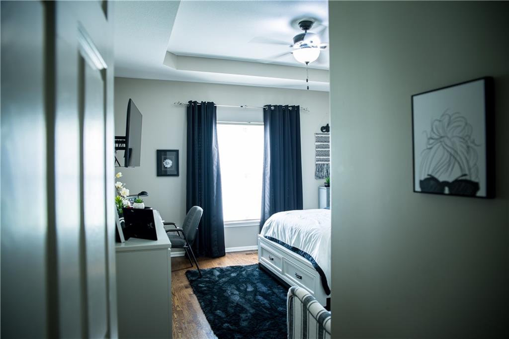 This home has been tastefully decorated and meticulously maintained. It's so stunning it could be on HGTV. Hardwood floors throughout the main level, with a tiled laundry room. Rooms are spacious, especially the master ensuite. In fact, there are two master ensuites: one on the main level and the other in the lower level. The lower level master bath has heated floors and the LL walk-in closet includes the 2nd laundry hook-up. There is a family room with a game area and bar in the LL, as well. Updates to the home include a new water heater, all flooring, light fixtures and ceiling fans, furnace, water softener, roof and cooktop. The backyard is enticing with a covered patio and a separate cement pad for additional entertaining. The newer Basehor Elementary School is within walking distance, and the HOA provides a swimming pool, shelter, and basketball court. Don't miss this stunning home!
