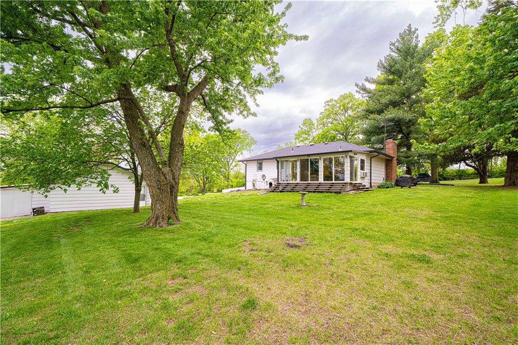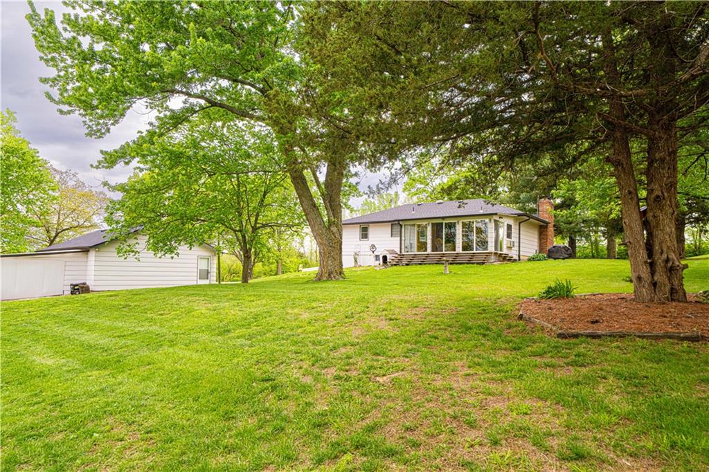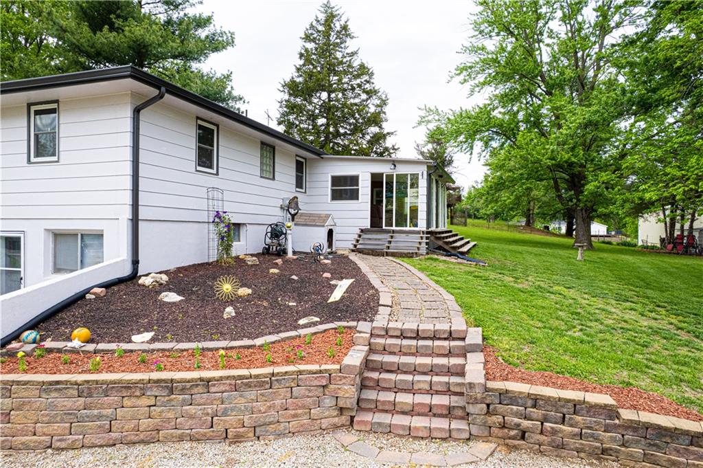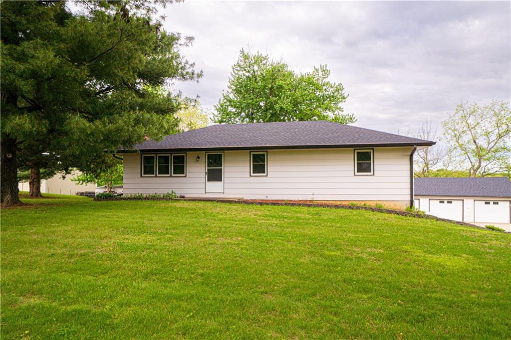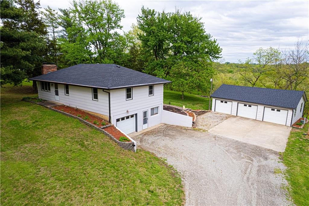 Spacious and well-maintained 4-bedroom, 2-bath home on 1.5 acres along State Rt DD in Savannah, MO, offering 2,536 total finished square feet and a full finished walk-out basement. This property has seen extensive updates, including new windows, HVAC system with humidifier, hot water heater, and added attic insulation in 2021, plus a brand-new roof and gutters in 2024. Septic system (tank and laterals) was replaced in 2017. The main level features three bedrooms with hardwood floors, ceiling fans, and soft pull-down blinds. The updated kitchen offers hickory cabinets with soft-close drawers, laminate flooring, modern lighting, and includes GE stove/oven, microwave, Frigidaire refrigerator, and Maytag dishwasher. The living room showcases a wood-burning fireplace, built-in grandfather clock, and fresh paint. The finished basement adds a fourth bedroom, second full bath with recent updates, new laminate flooring, fresh paint, additional living space with a second wood-burning fireplace, and ample storage. Wall-mounted TVs in the basement living area and bedroom stay. Exterior highlights include a 3-car detached garage with electricity and automatic doors (roof replaced in 2020), attached lean-to for extra storage, a 1-car attached garage, and plenty of parking. A rare combination of space, updates, and functionality—this home is truly move-in ready.