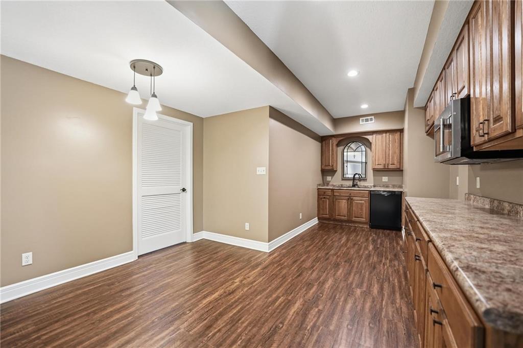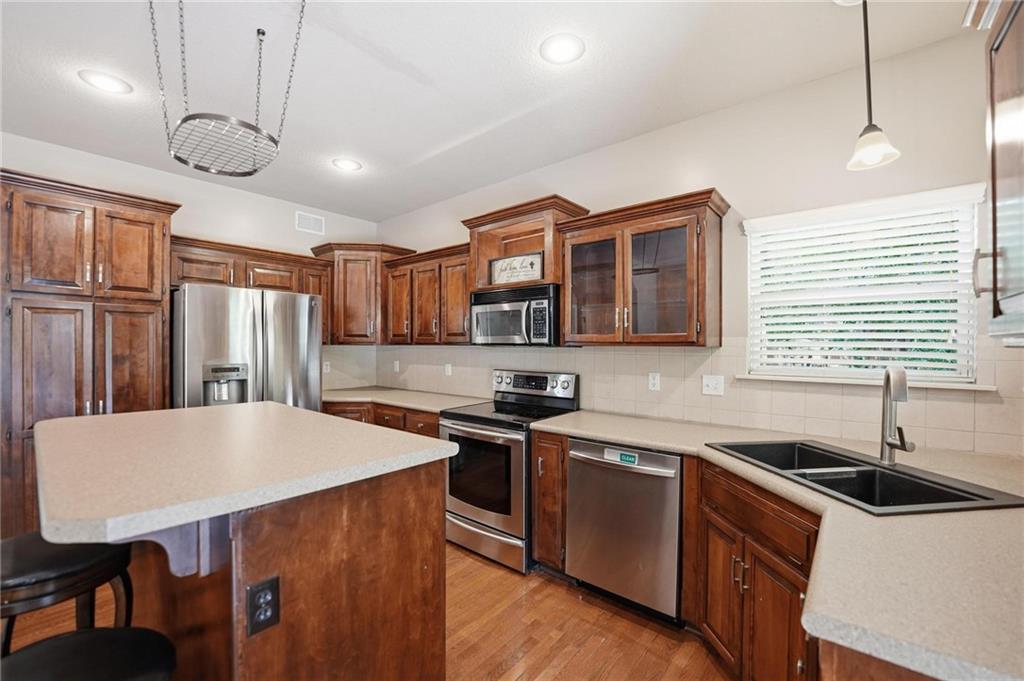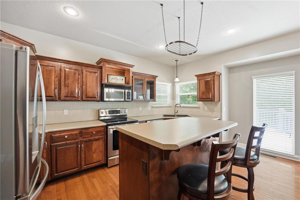 Tucked away on a spacious cul-de-sac lot backing to treed green space, this home offers a rare blend of privacy and convenience with easy access to shopping, dining, and everyday amenities. The setting provides a secluded feel while still keeping you close to everything you need. Inside, the main-level layout is designed for comfortable daily living, featuring a primary suite with a walk-in closet, along with inviting living and dining areas finished with hardwood flooring. The kitchen includes an island, pantry, eat-in space, and wood flooring, creating a functional and welcoming hub of the home. Additional bedrooms offer generous space, including walk-in closets and flexible use options. The finished basement expands the home’s versatility with a full kitchen and additional bedrooms, making it ideal for guests, extended stays, or multi-generational living. A deep two-car garage adds valuable room for storage, hobbies, or larger vehicles. Numerous updates provide peace of mind and modern appeal, including a brand new roof with 6-inch gutters, fresh exterior and interior paint, updated light fixtures and ceiling fans, upgraded faucets, a new kitchen sink and hardware, dishwasher, fire and CO detector alarms, and a refreshed half bath vanity. Additional improvements include a zoned HVAC system enhanced with an added damper and thermostat. A new hot water heater further contributes to the home’s efficiency and reliability. This property stands out for its thoughtful updates, flexible living spaces, and serene setting, making it a well-rounded option for a variety of lifestyles.
